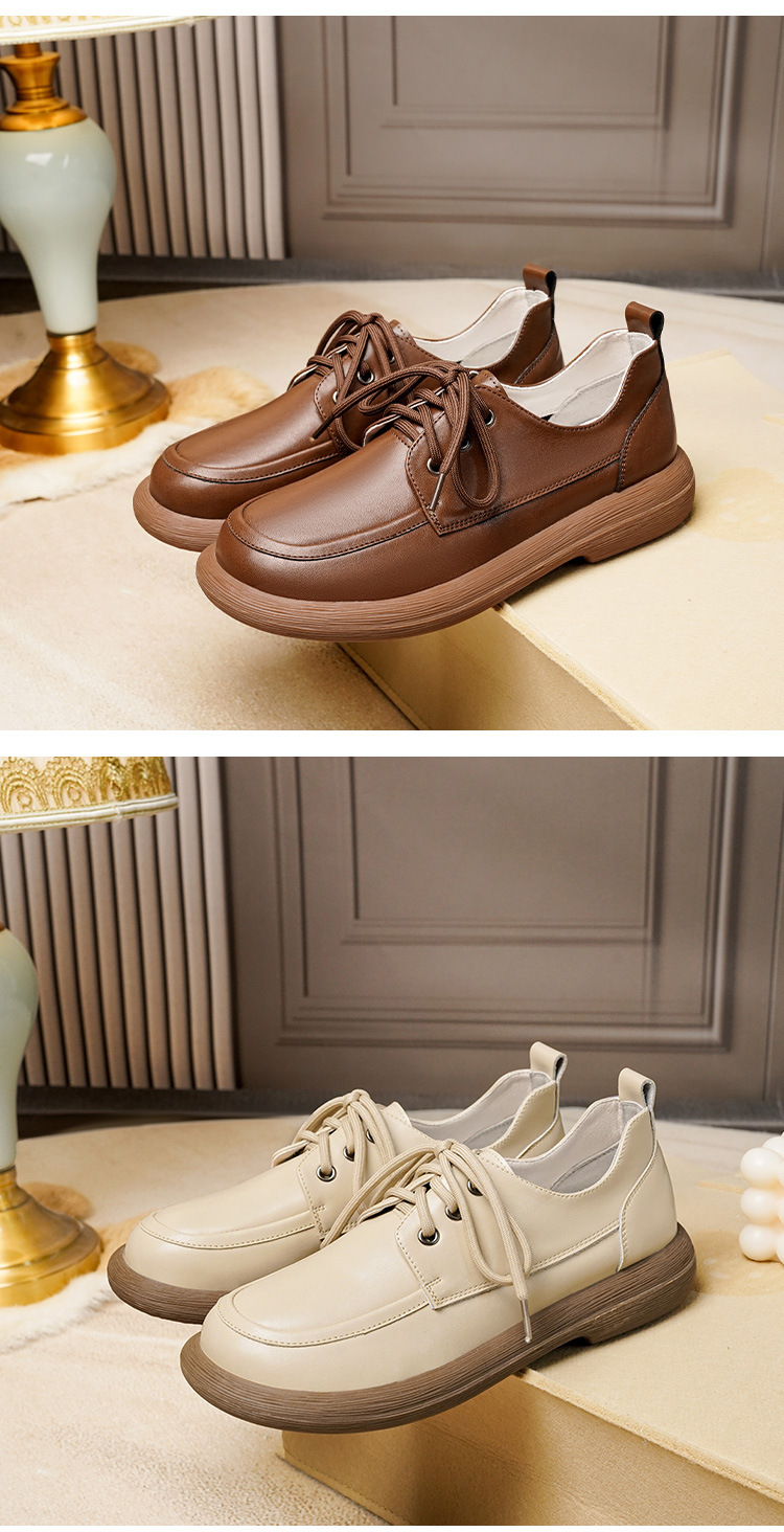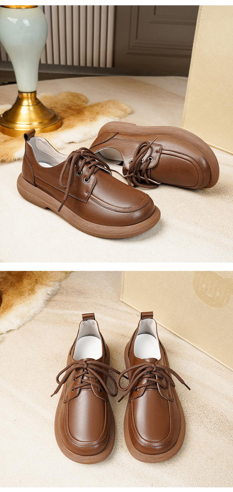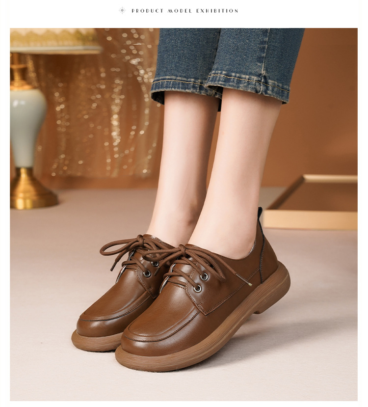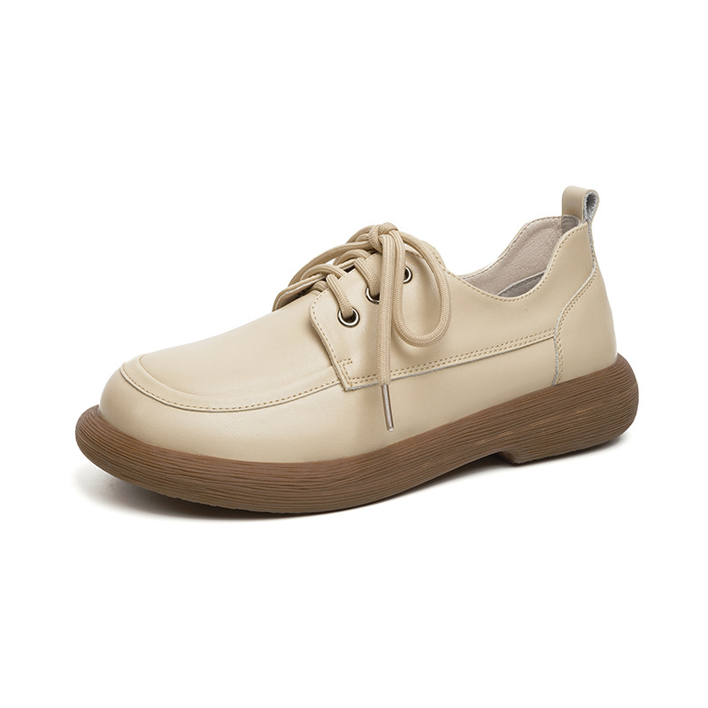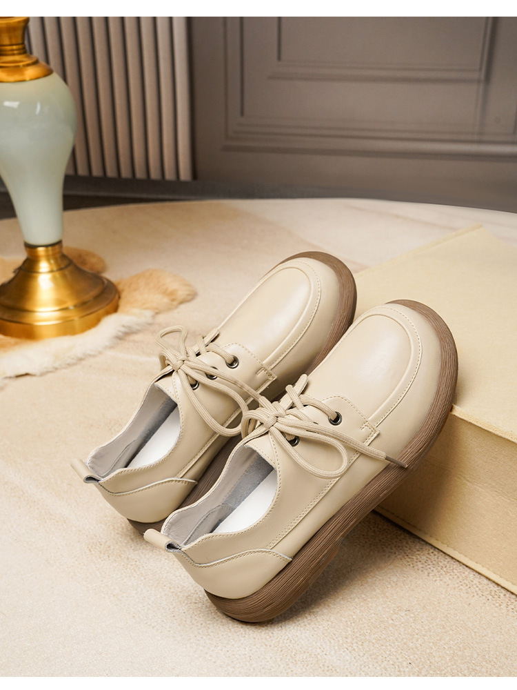 봄과 가을 새로운 부드러운 가죽 플랫 신발 여성 영국 스타일 레이스 업 캐주얼 소프트 하단 여성 신발 두꺼운 하단 로퍼 편안한