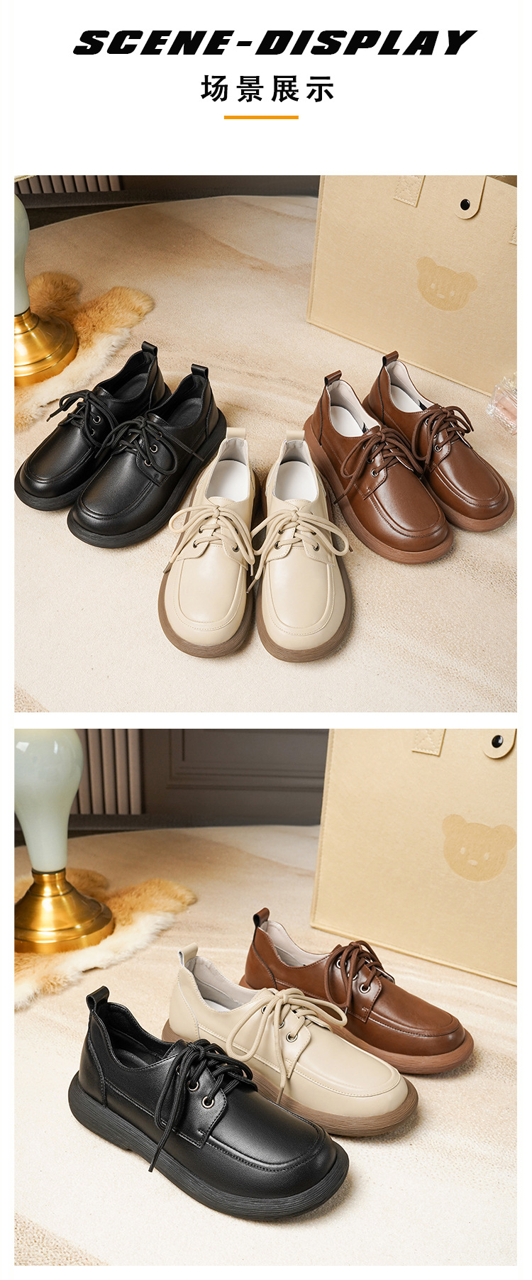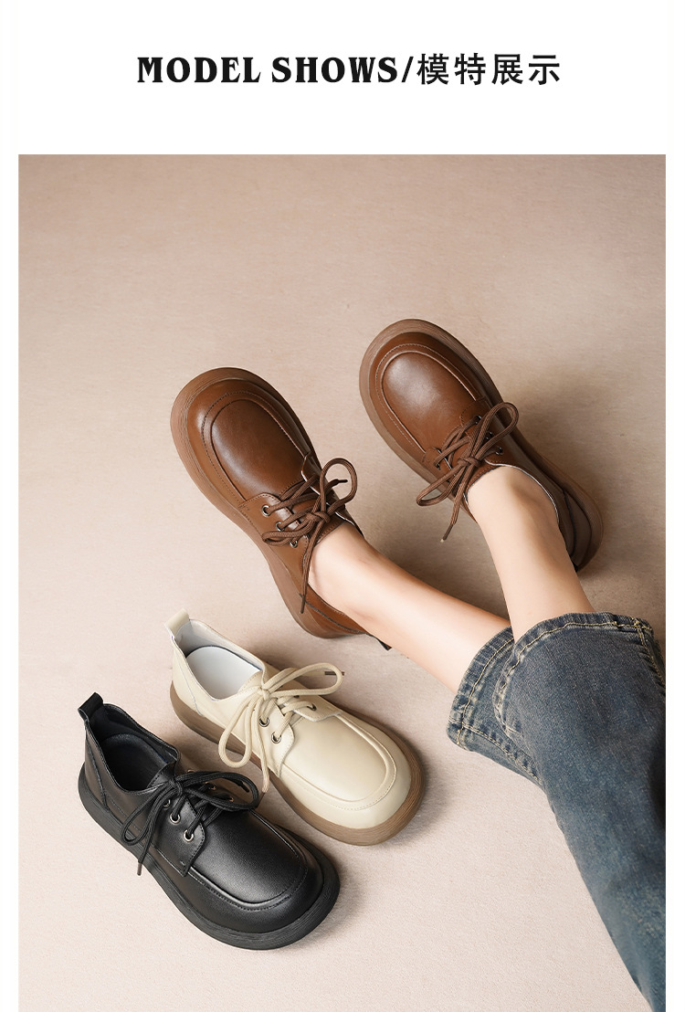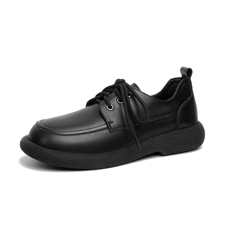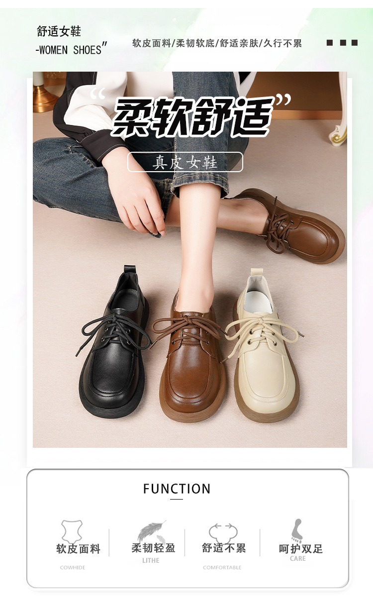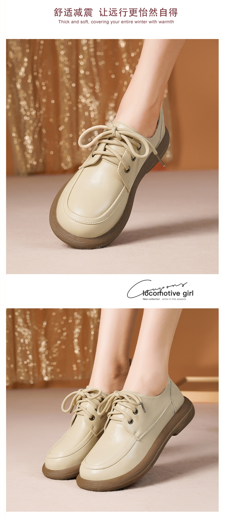 봄과 가을 새로운 부드러운 가죽 플랫 신발 여성 영국 스타일 레이스 업 캐주얼 소프트 하단 여성 신발 두꺼운 하단 로퍼 편안한