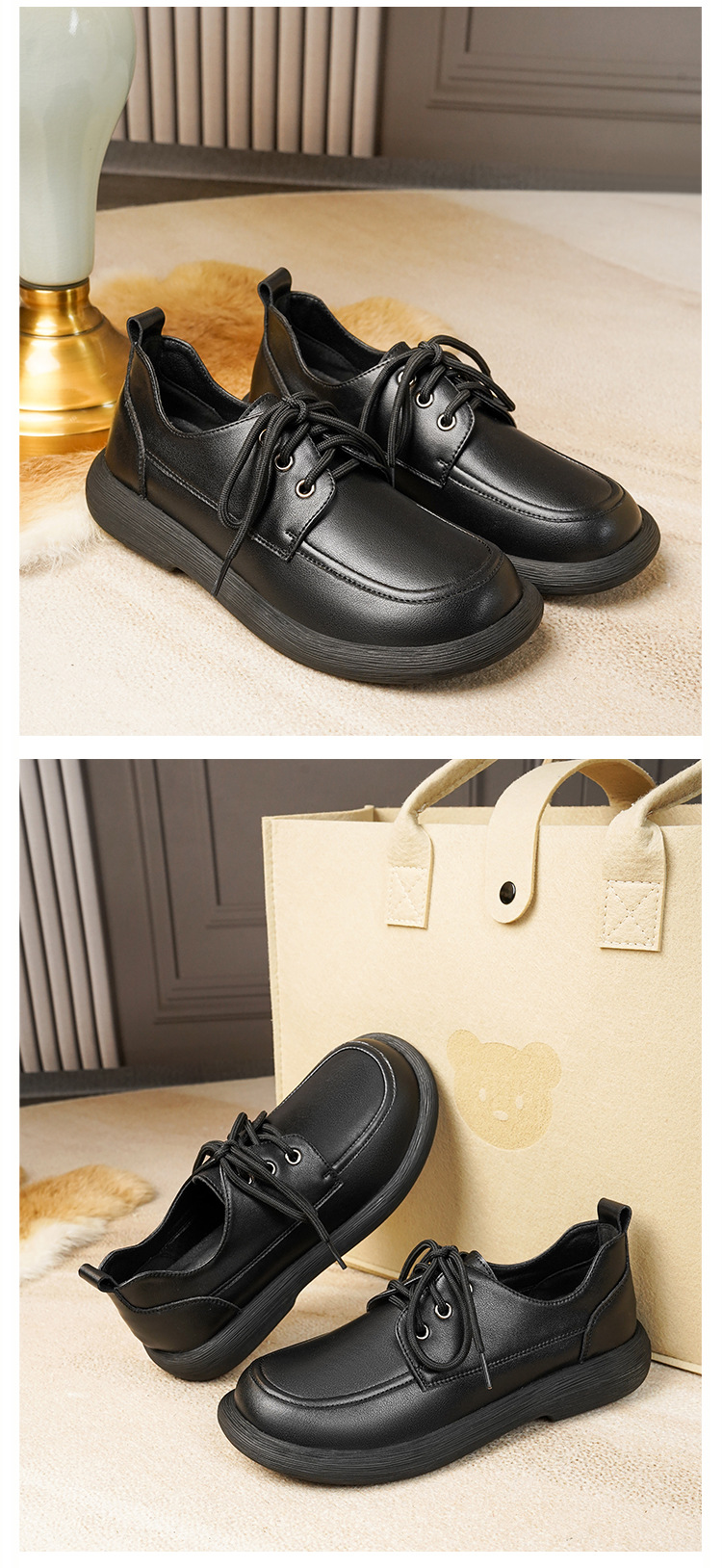 봄과 가을 새로운 부드러운 가죽 플랫 신발 여성 영국 스타일 레이스 업 캐주얼 소프트 하단 여성 신발 두꺼운 하단 로퍼 편안한스토어 가기