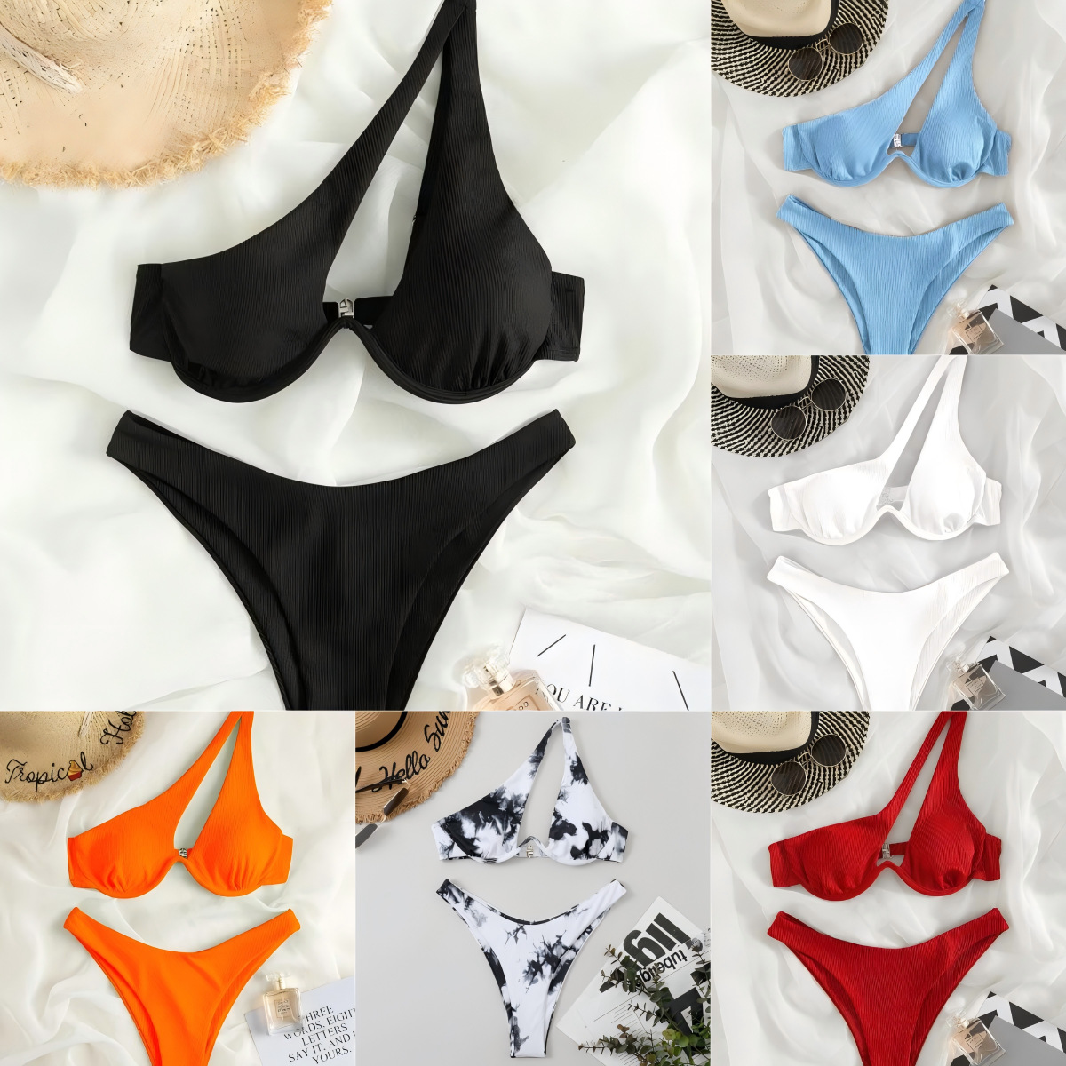 비키니 2024 솔리드 컬러 섹시 비키니 수영복 숄더 스틸 지원 푸시 업 스플릿 투피스 수영복 여성용 재고