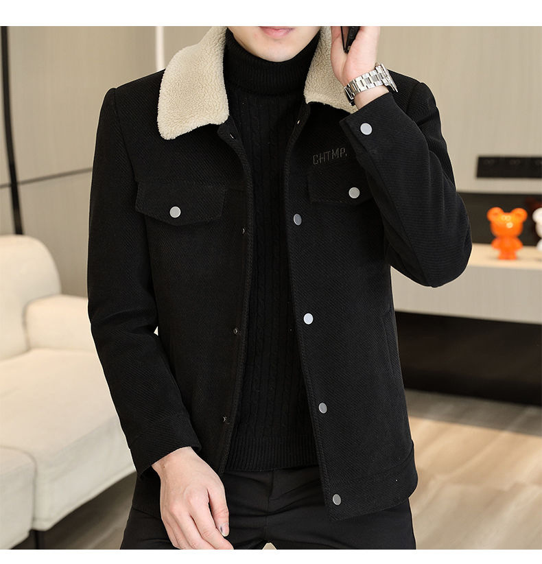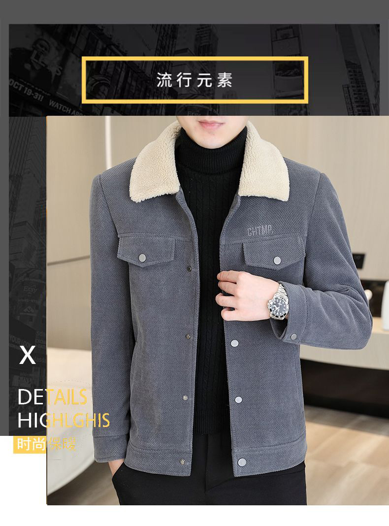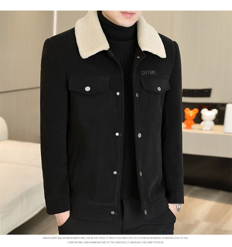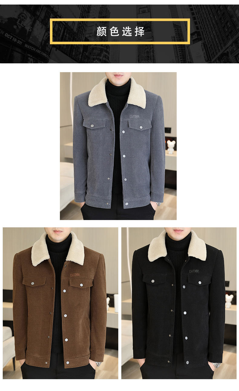 남자 가을과 겨울 옷깃 자켓 퓨어 컬러 모피 칼라 북극 벨벳 코트 기모 따뜻한 중년 재킷스토어 가기