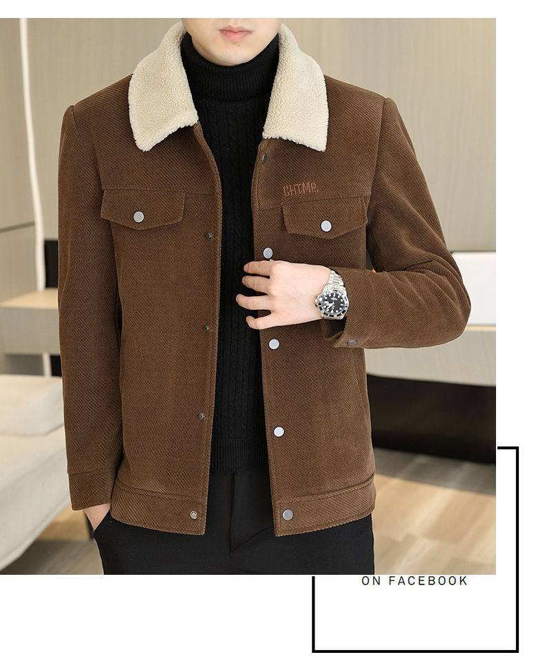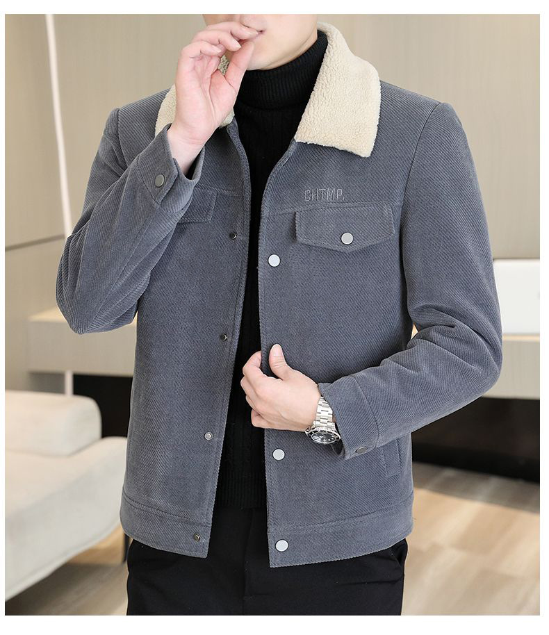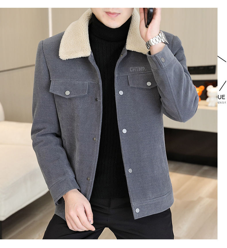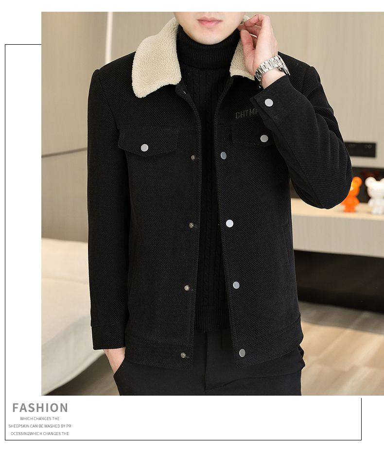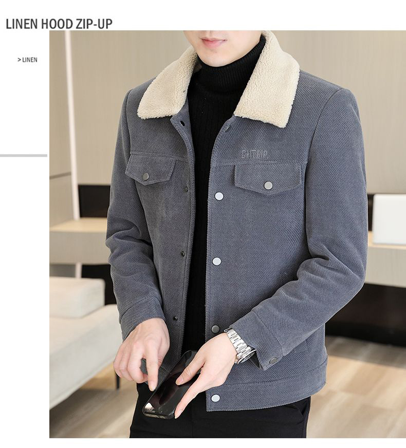 남자 가을과 겨울 옷깃 자켓 퓨어 컬러 모피 칼라 북극 벨벳 코트 기모 따뜻한 중년 재킷스토어 가기