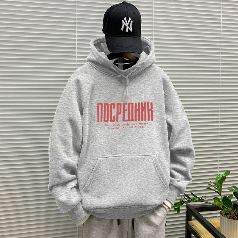 • 라이트 그레이 후드 스웨트셔츠 플러스 플리스 스타일-1597【GL】