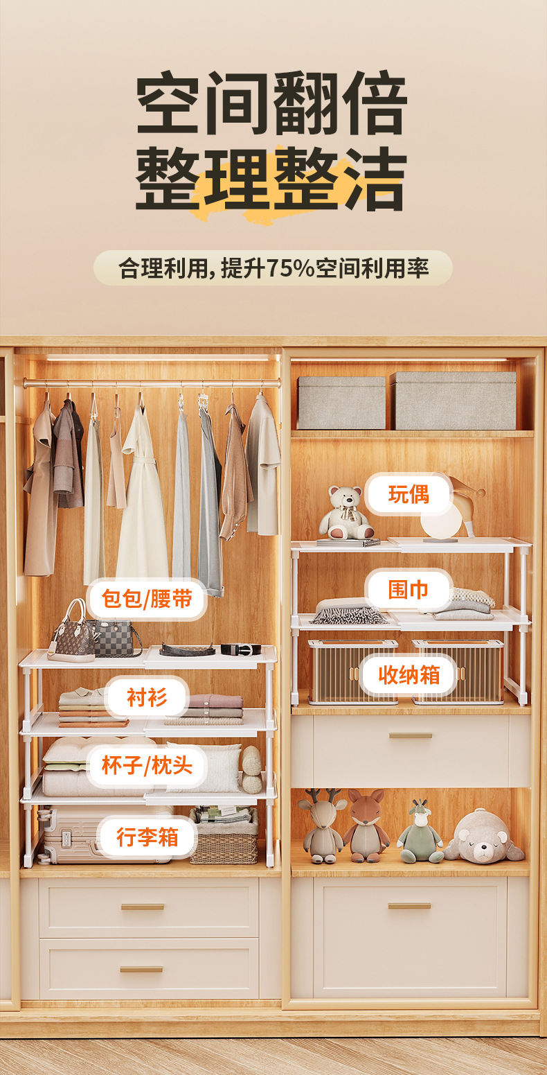 옷장 보관 계층화 된 파티션 개폐식 캐비닛 파티션 선반 옷장 보관 랙 기숙사 보관 인공물스토어 가기