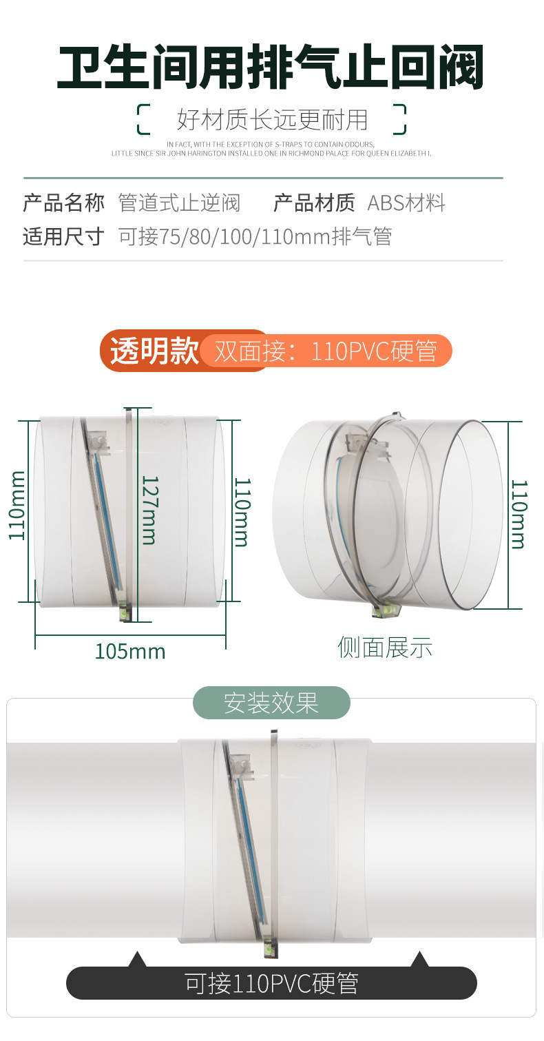화장실 체크 밸브 Yuba 배기 팬 배기 파이프 110PVC75 액세서리 환기 팬 체크 밸브 냄새 방지 장치스토어 가기