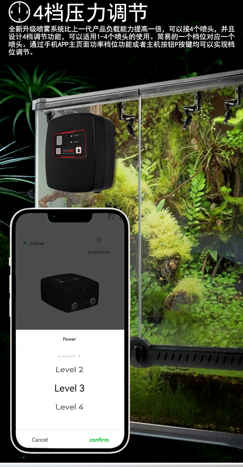 调节功能,可以根据喷头数量调节水压(主机和APP端均可调节);5.增加APP功能-