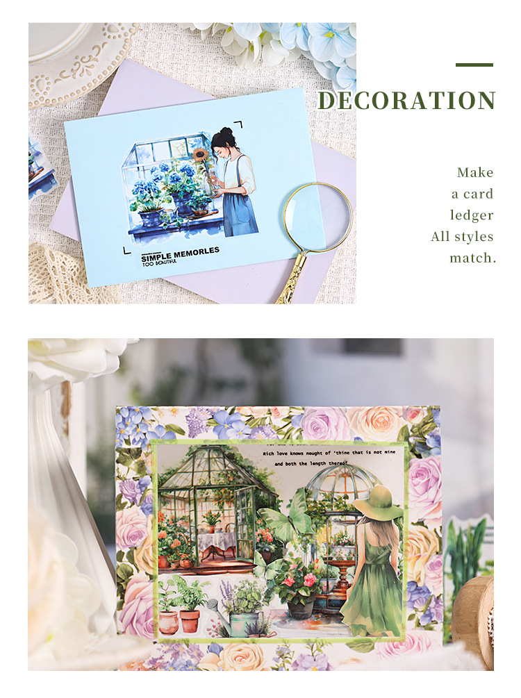 꽃 경로 정원의시 특별 오일 핸드 계정 스티커 패키지 DIY 손 계정 일기 및 종이 스티커 국경 간 목가적 스타일 스티커스토어 가기