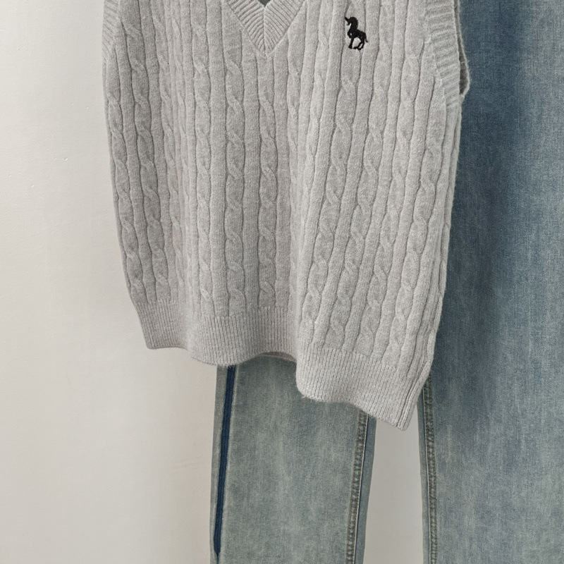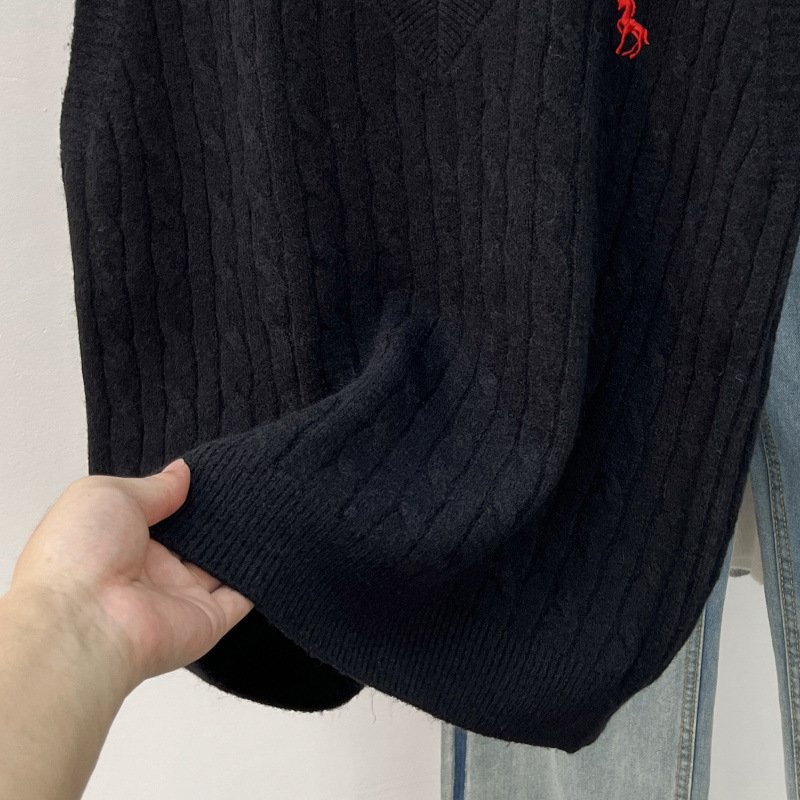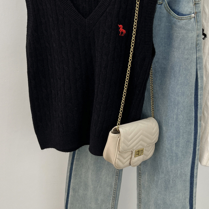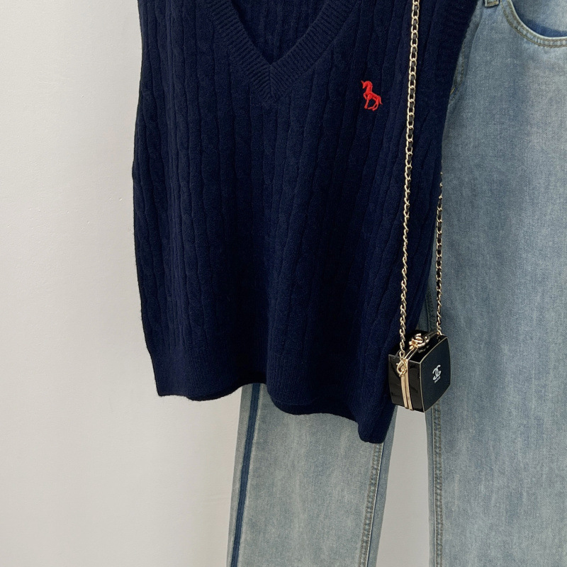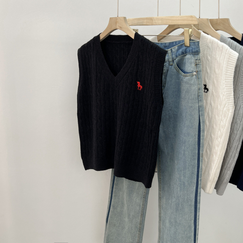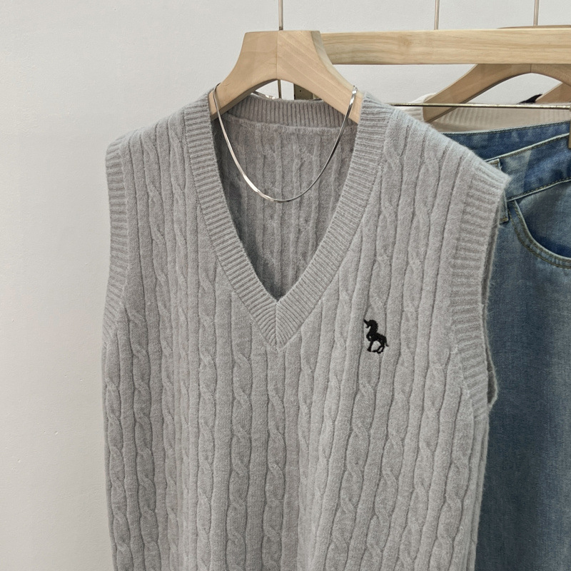 일본 스타일 작은 자수 트위스트 V 넥 니트 스웨터 조끼 여성의 가을 스택 느슨한 민소매 스웨터 외부 탑
