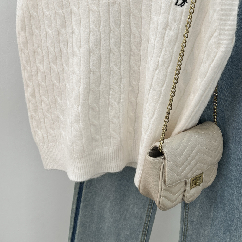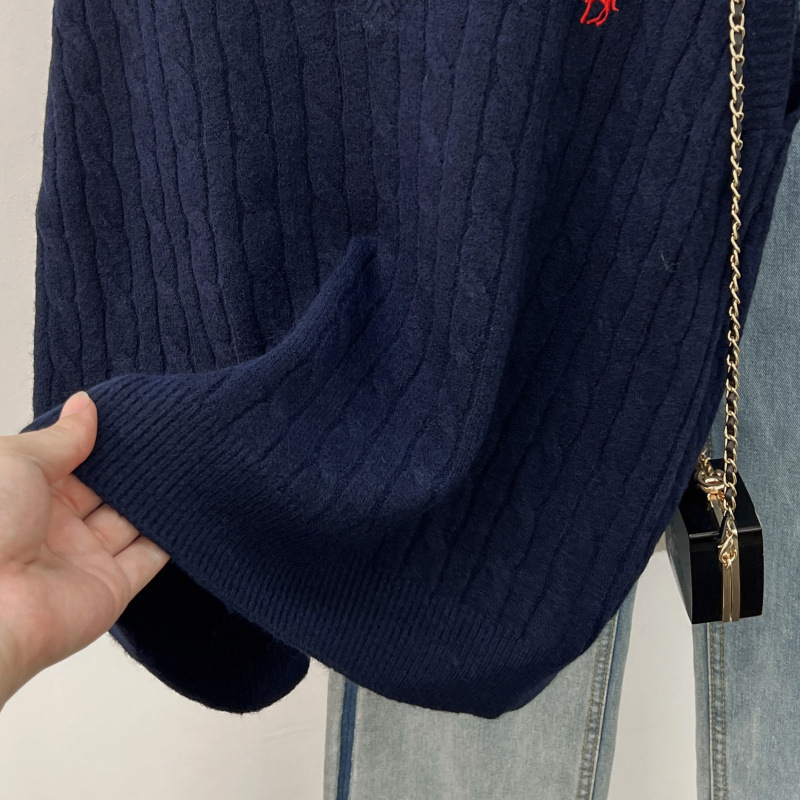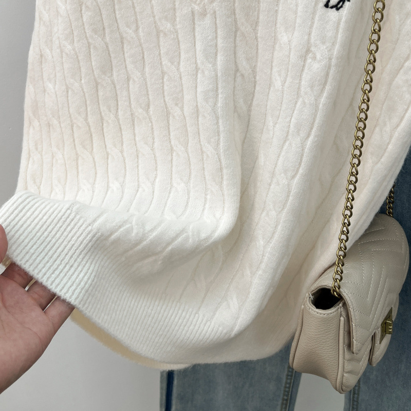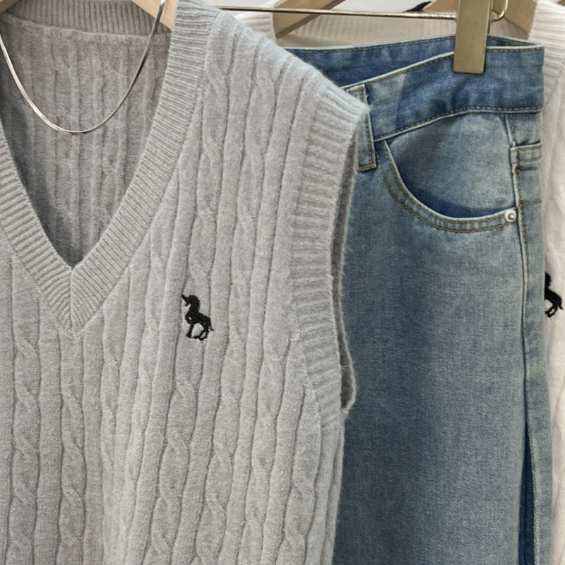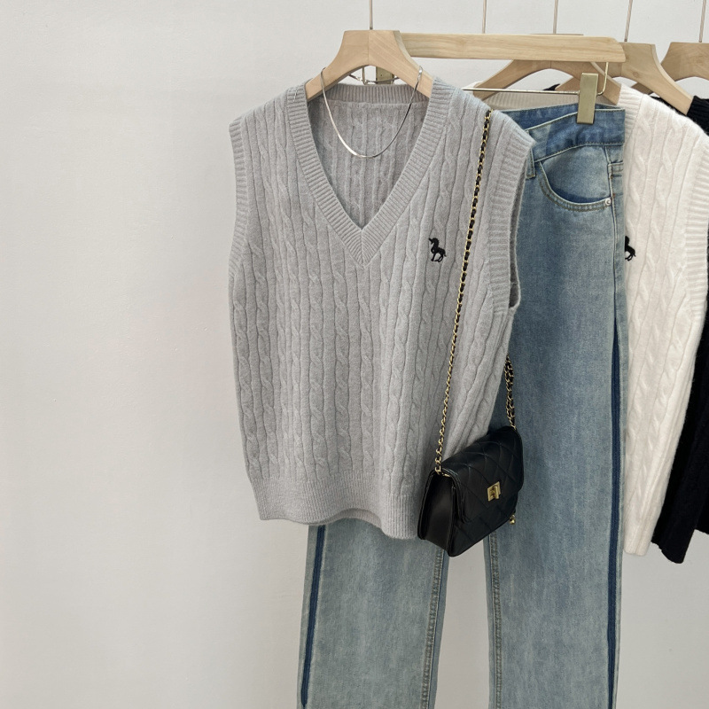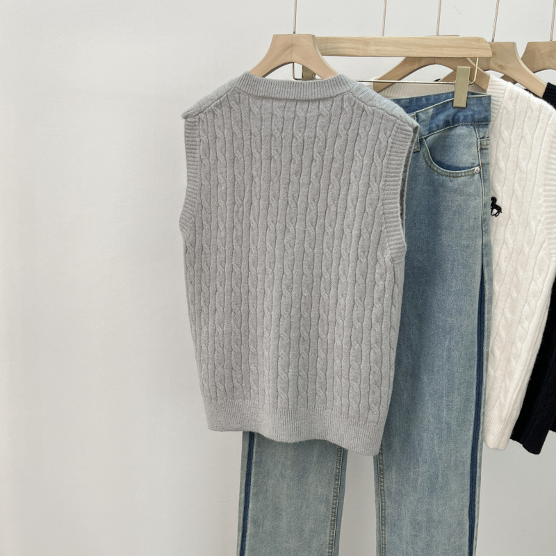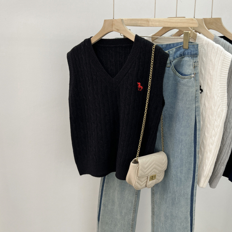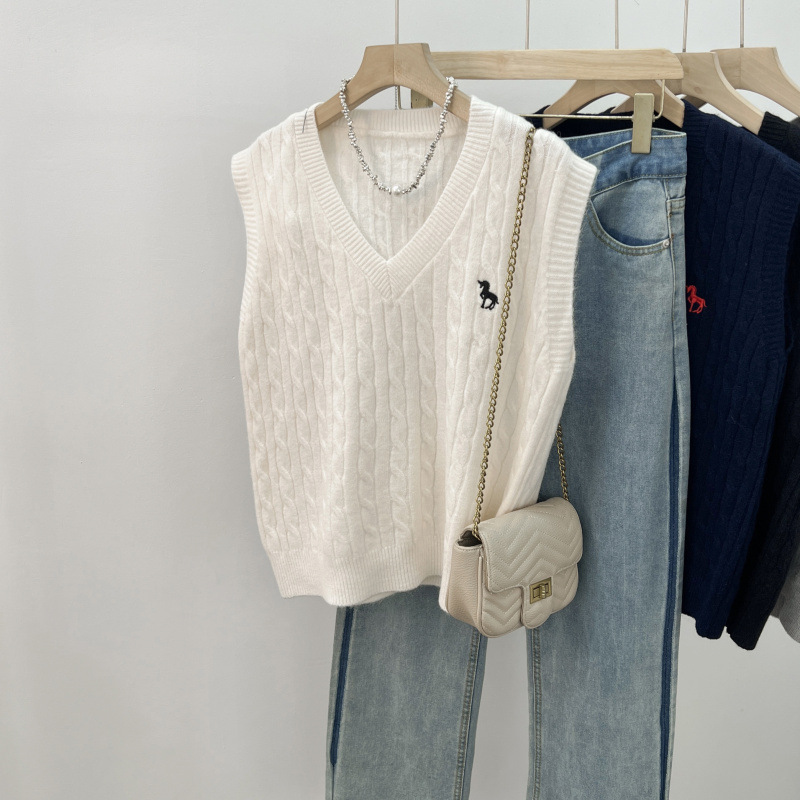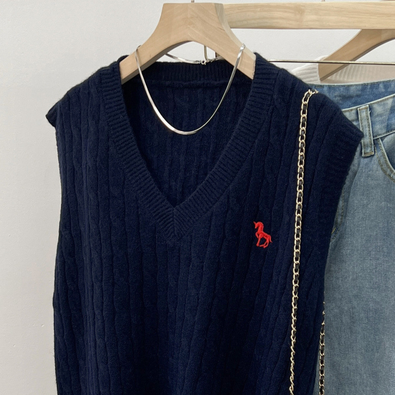 일본 스타일 작은 자수 트위스트 V 넥 니트 스웨터 조끼 여성의 가을 스택 느슨한 민소매 스웨터 외부 탑스토어 가기