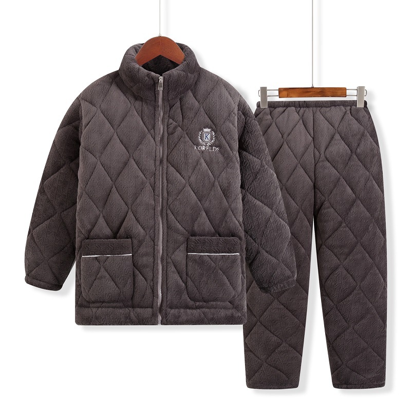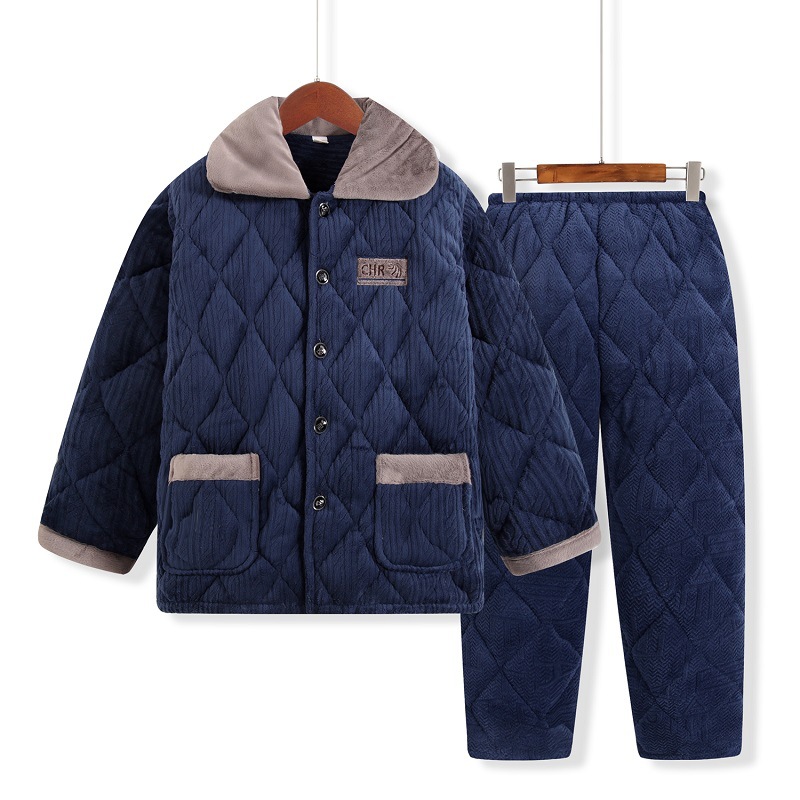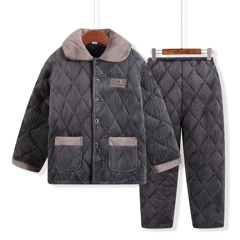 남성용 잠옷 겨울 3 층 면화 기모 플러스 사이즈 외형 남성용 산호 양털 홈 의류 세트