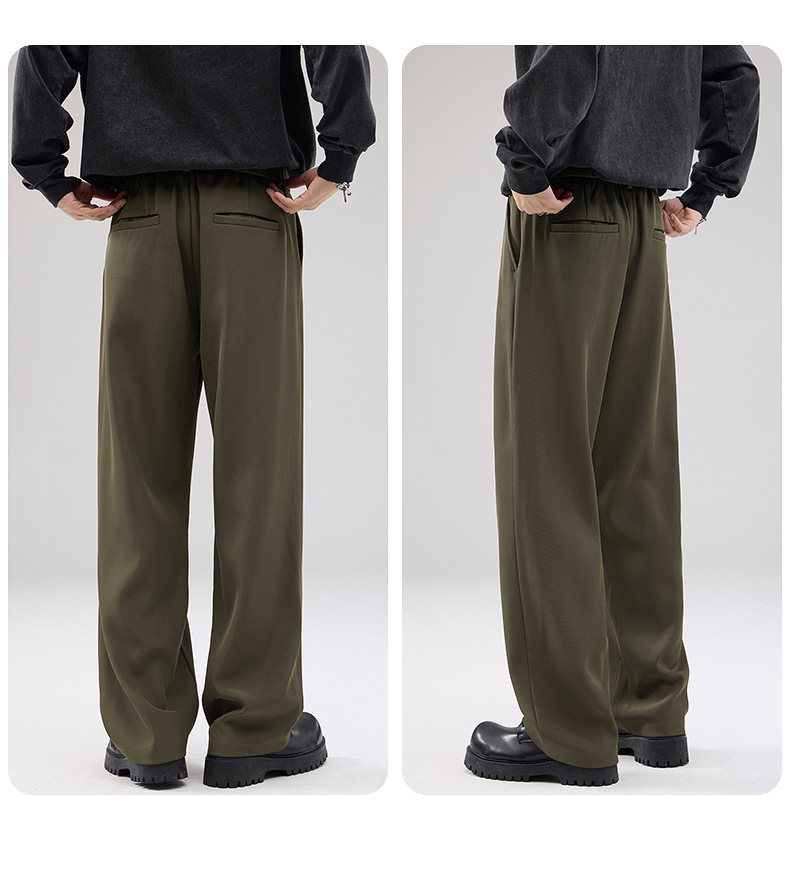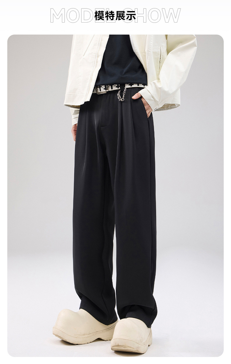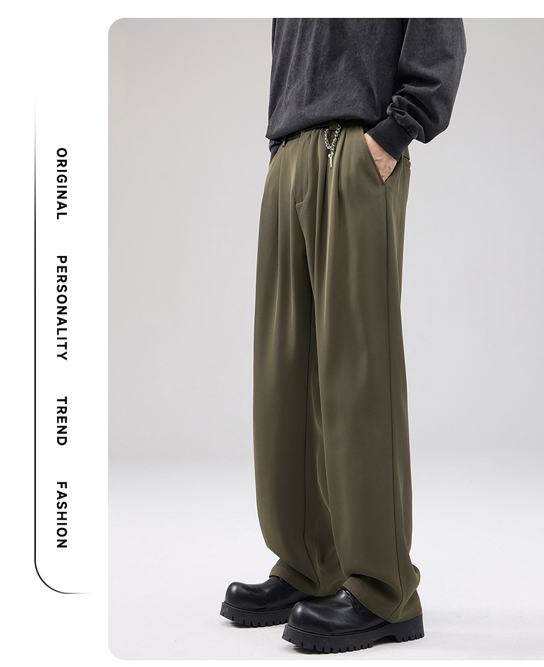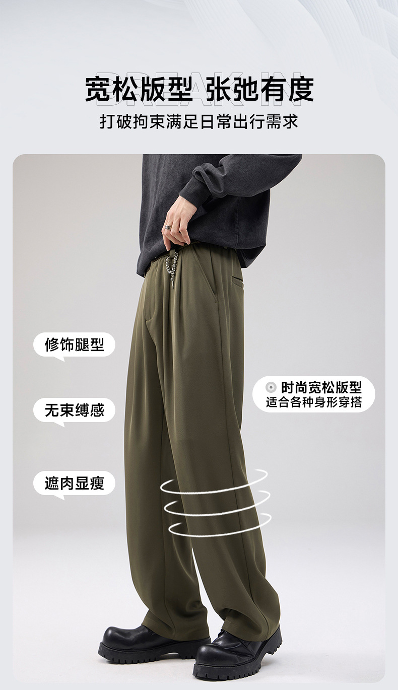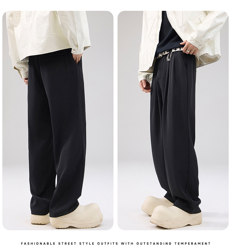 Muqiu 남성복 ∠ 미국식 루즈 스트레이트 캐주얼 바지 남성용 클린 핏 하이 엔드 더미 바지