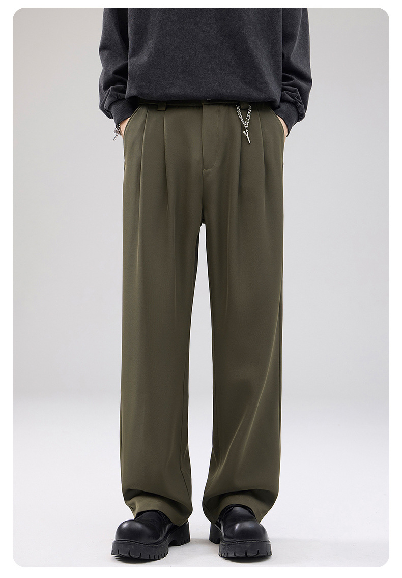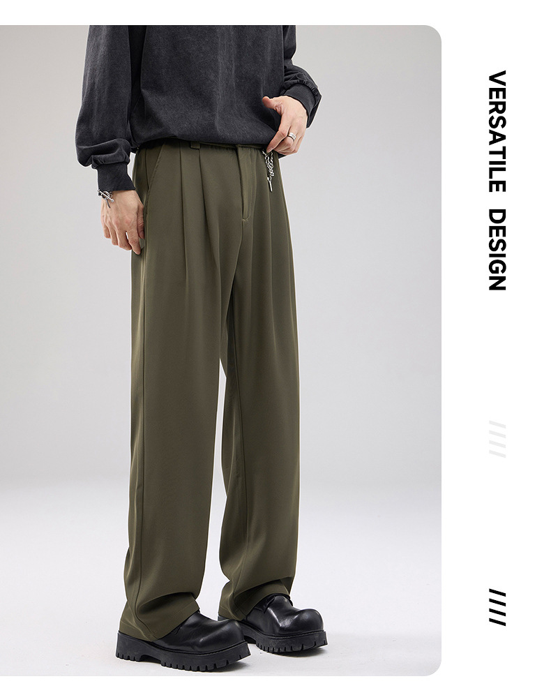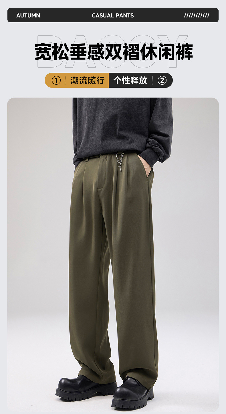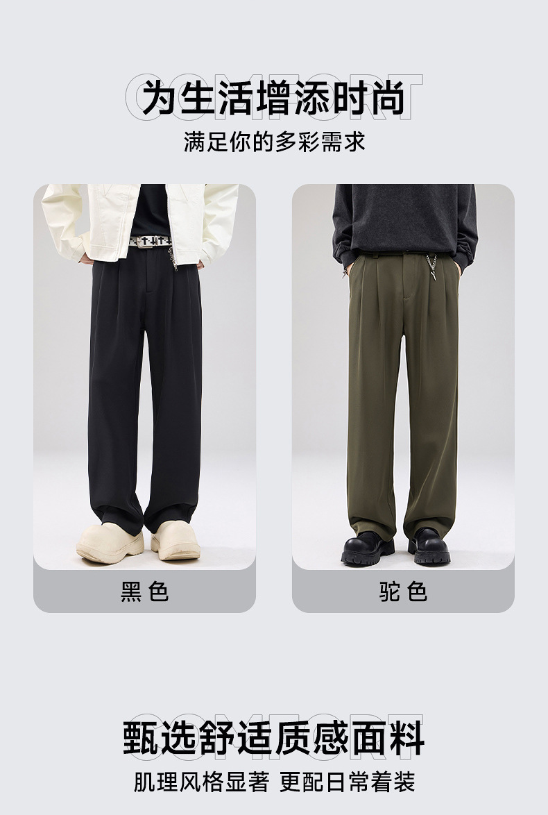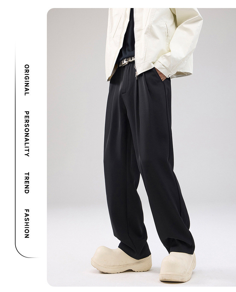 Muqiu 남성복 ∠ 미국식 루즈 스트레이트 캐주얼 바지 남성용 클린 핏 하이 엔드 더미 바지