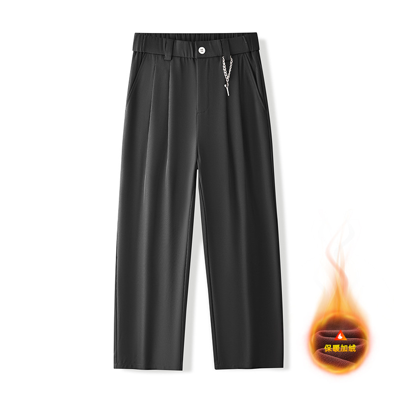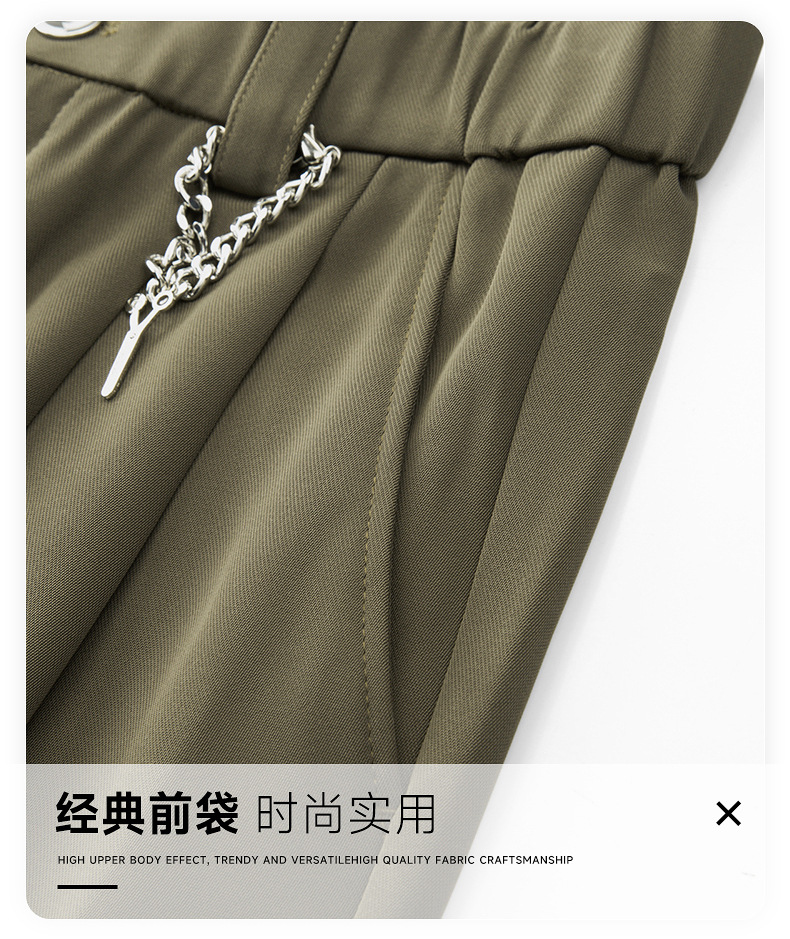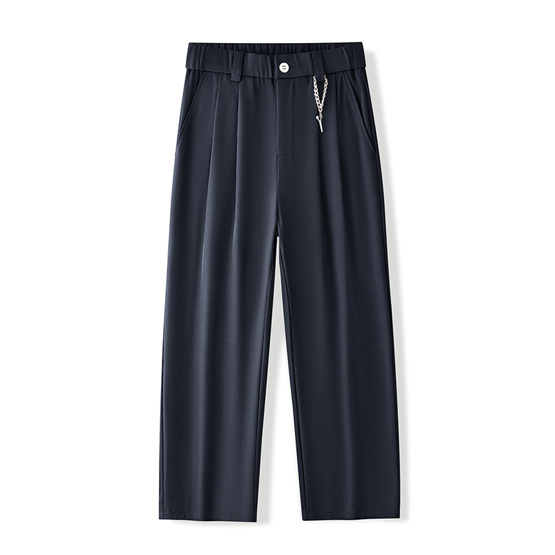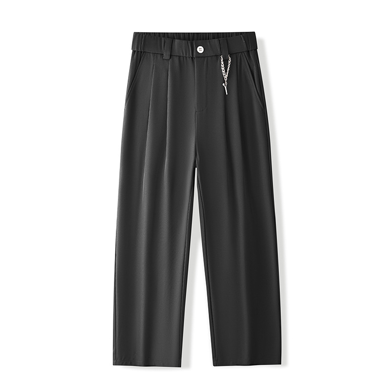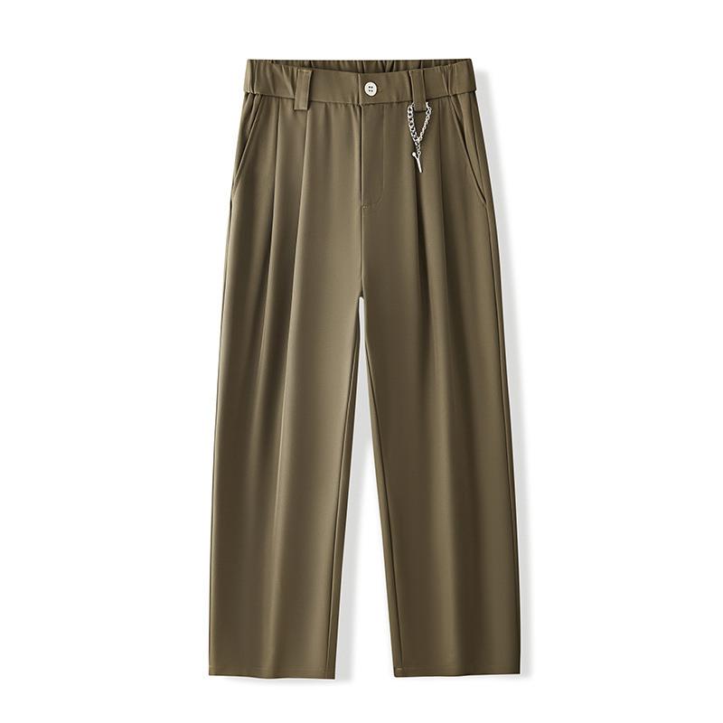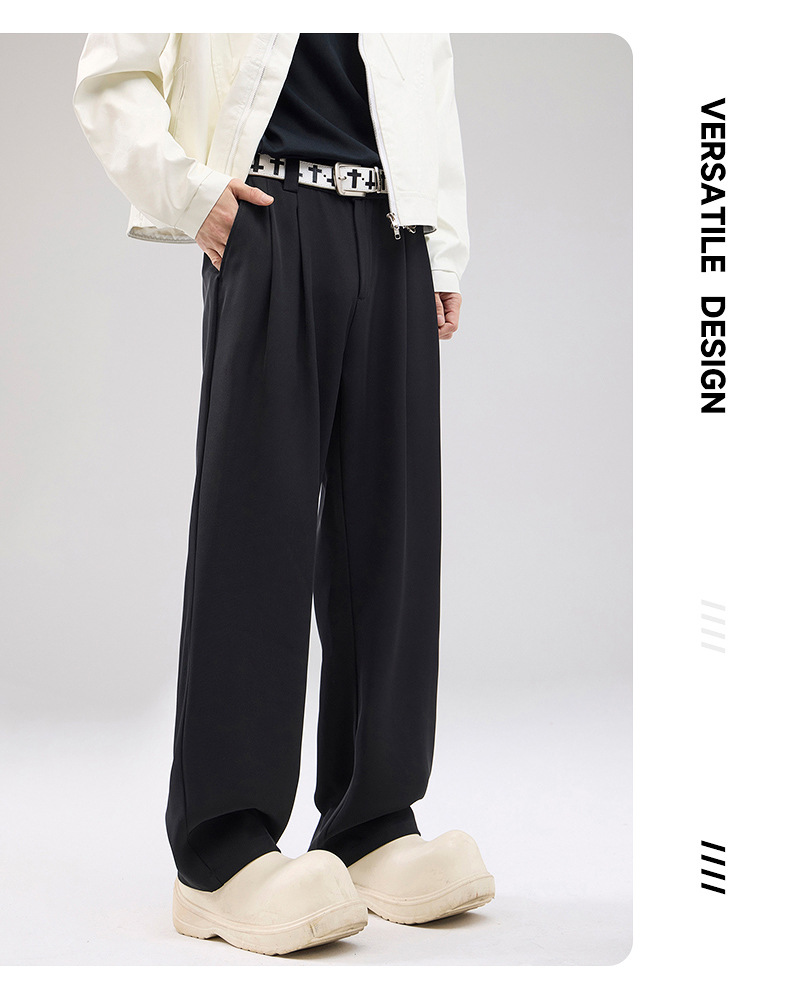 Muqiu 남성복 ∠ 미국식 루즈 스트레이트 캐주얼 바지 남성용 클린 핏 하이 엔드 더미 바지