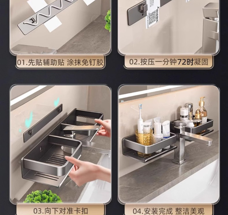 욕실 선반 수납 선반 펀치없는 세면대 세면대 화장품 수납 벽걸이 형 화장실 욕실 선반