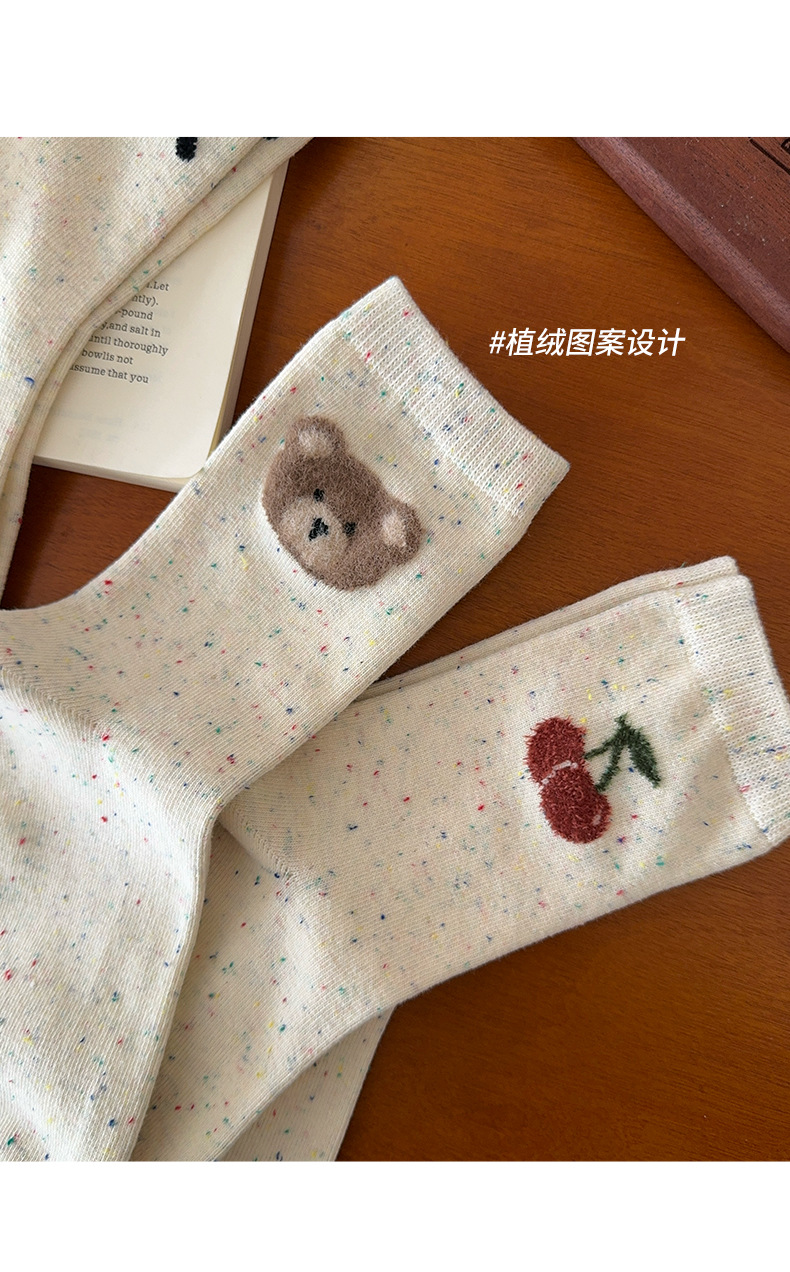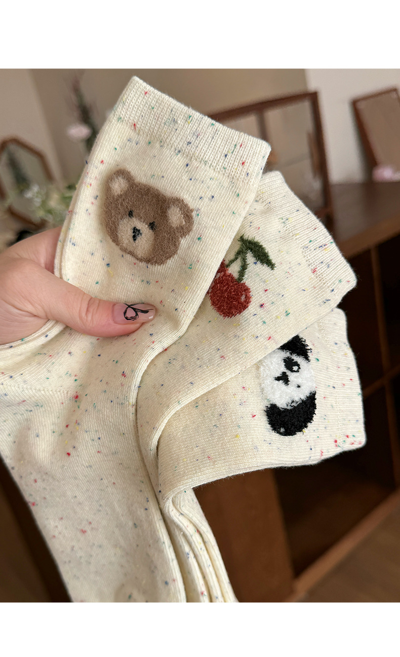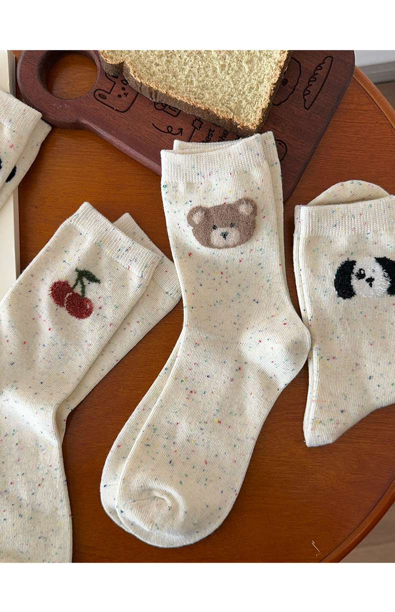 사랑스러운 양말 어린이 양말 도트 원사 봄과 가을 곰 조수 한국 만화 일본색 양말 도매