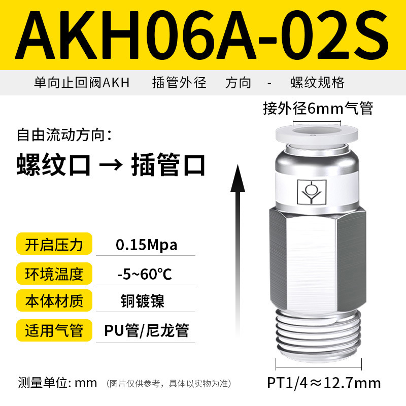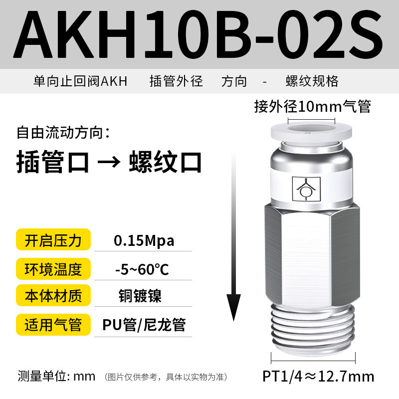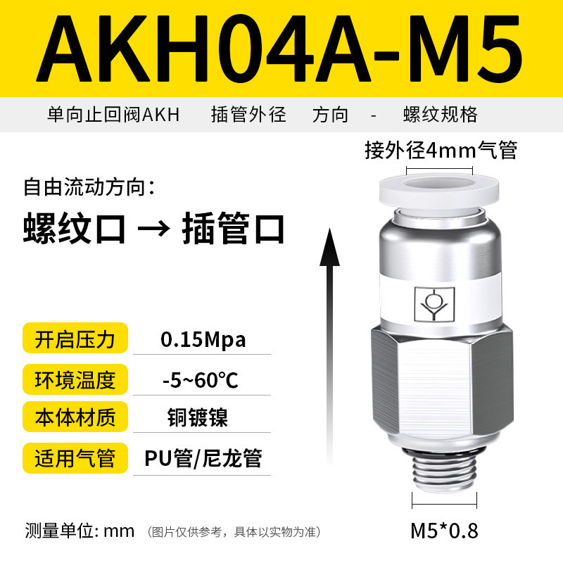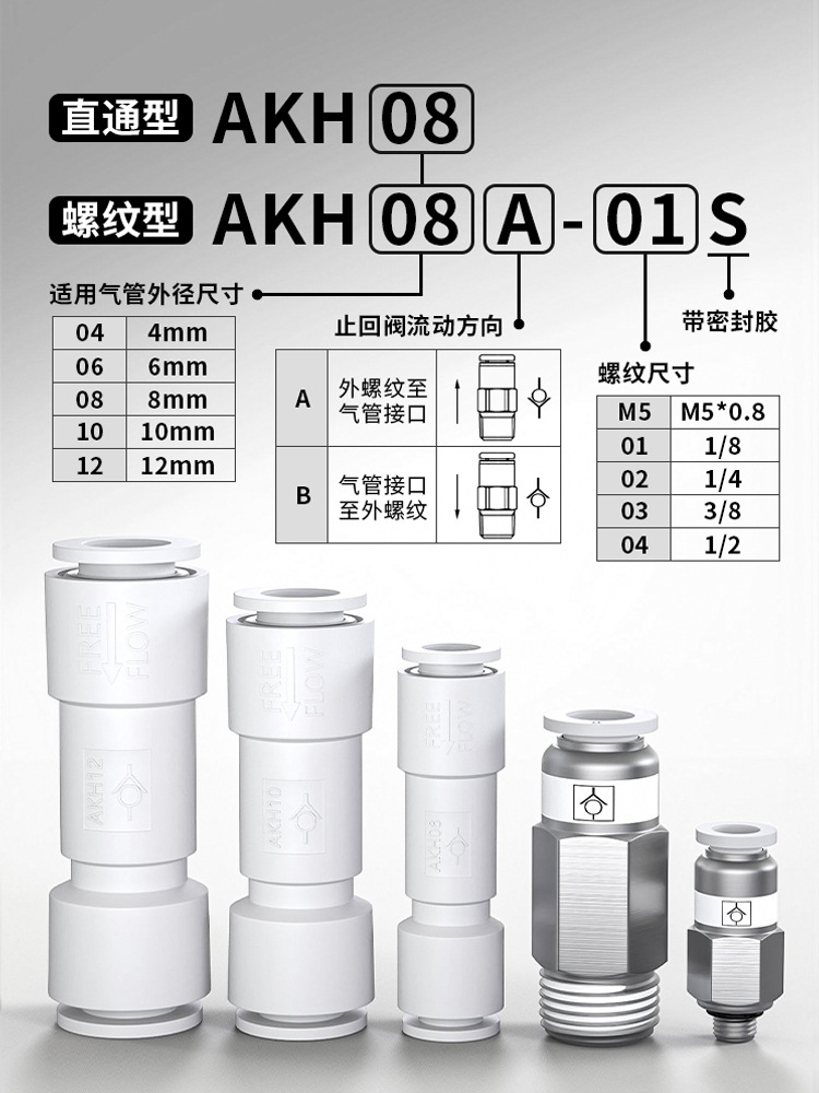 단방향 밸브 공압 가스 파이프 체크 밸브 직선 흡기 밸브 가스 회로 체크 밸브 빠른 연결 AKH4/6/8/10