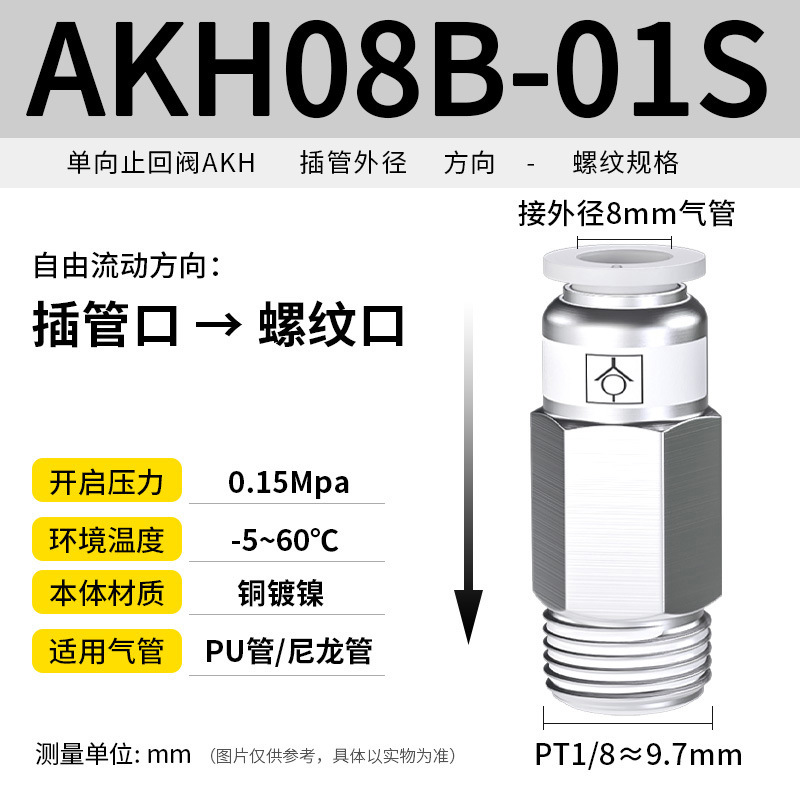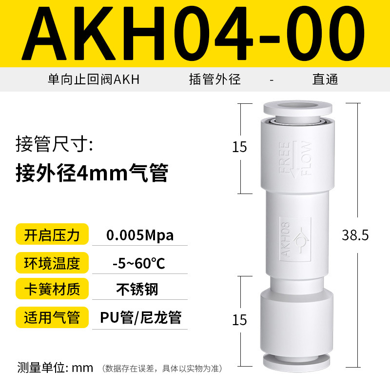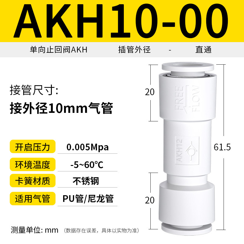 단방향 밸브 공압 가스 파이프 체크 밸브 직선 흡기 밸브 가스 회로 체크 밸브 빠른 연결 AKH4/6/8/10스토어 가기