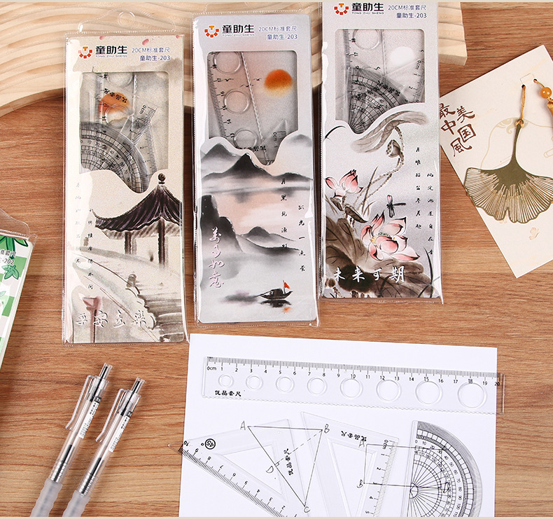 창조적 인 중국 스타일 영감 텍스트 세트 통치자 학생 20cm 통치자 삼각형 통치자 4 조각 보상 작은 선물 도매스토어 가기