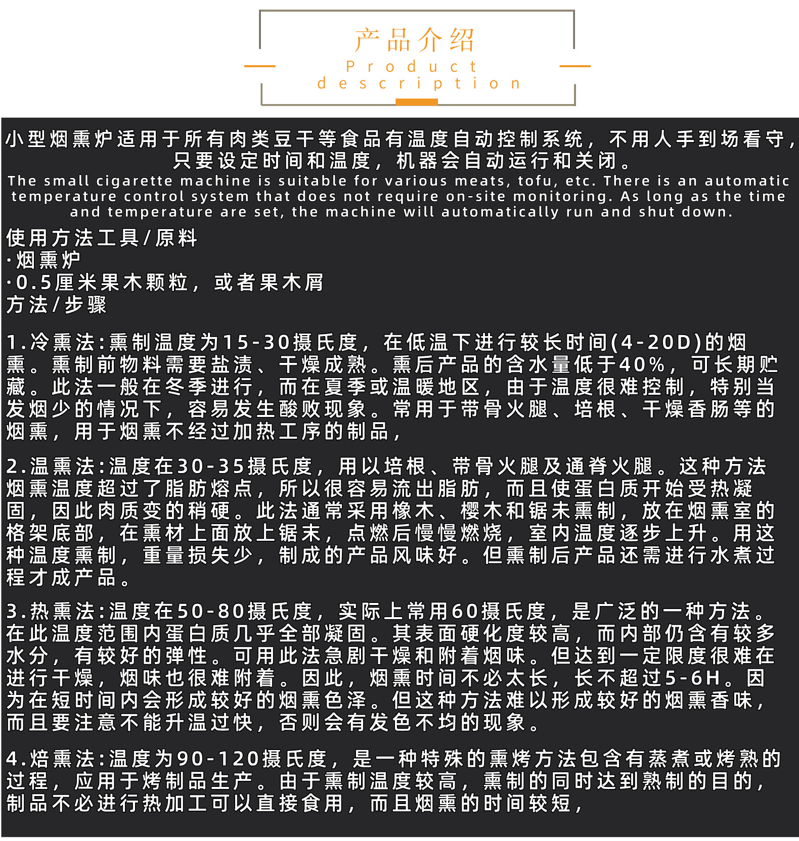 Jiahang 공장 직접 작은 흡연자 상업 자동 스테인리스 육류 제품 말린 콩 베이컨 흡연자