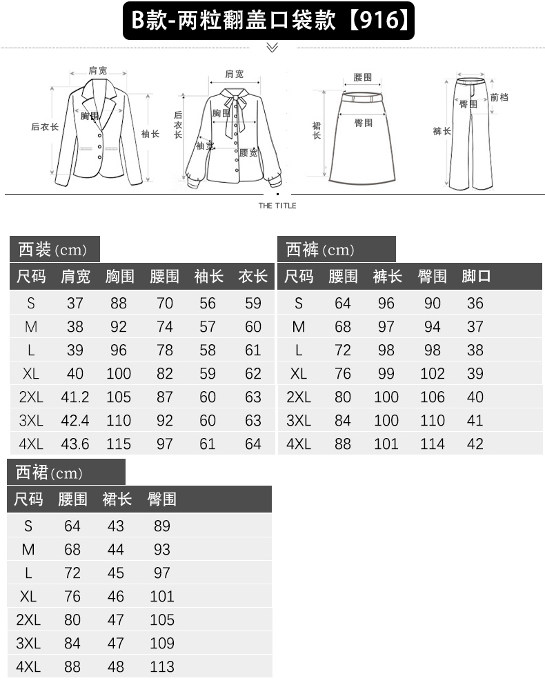 • B타입 - 파란색 정장 + 파란색 바지 + 파란색 스커트 + 흰색 셔츠(버튼 2개)