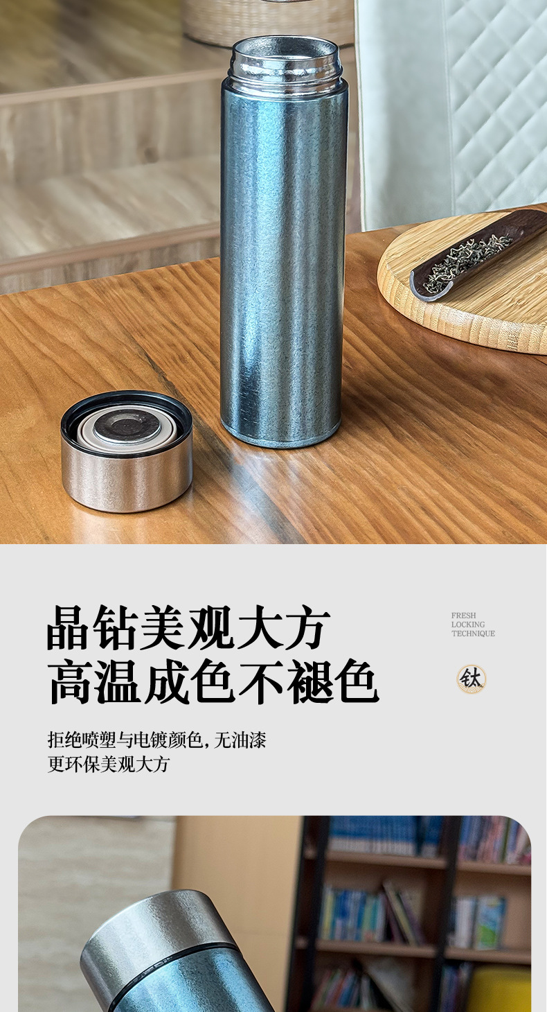 남성과 여성을 위한 이중 진공 순수 티타늄 보온병 컵, 차와 물 분리 컵, 휴대성, 고급스러운 외관, 풀 티타늄 컵, 맞춤형 선물스토어 가기