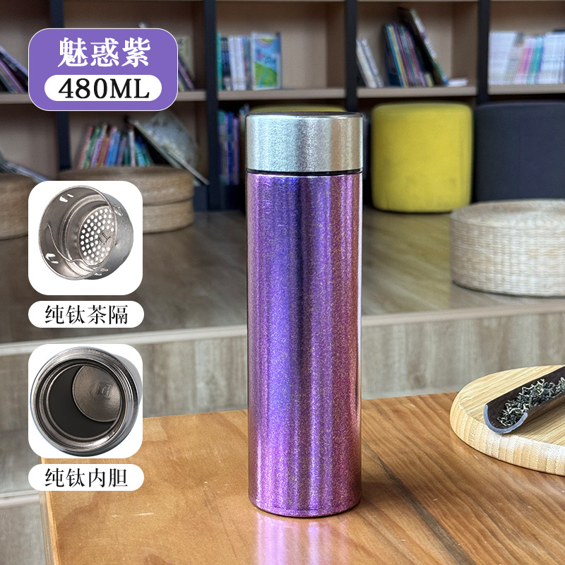 • 순수 티타늄 스트레이트 컵 [이중 순수 티타늄] 보라색 480ml + 선물 상자