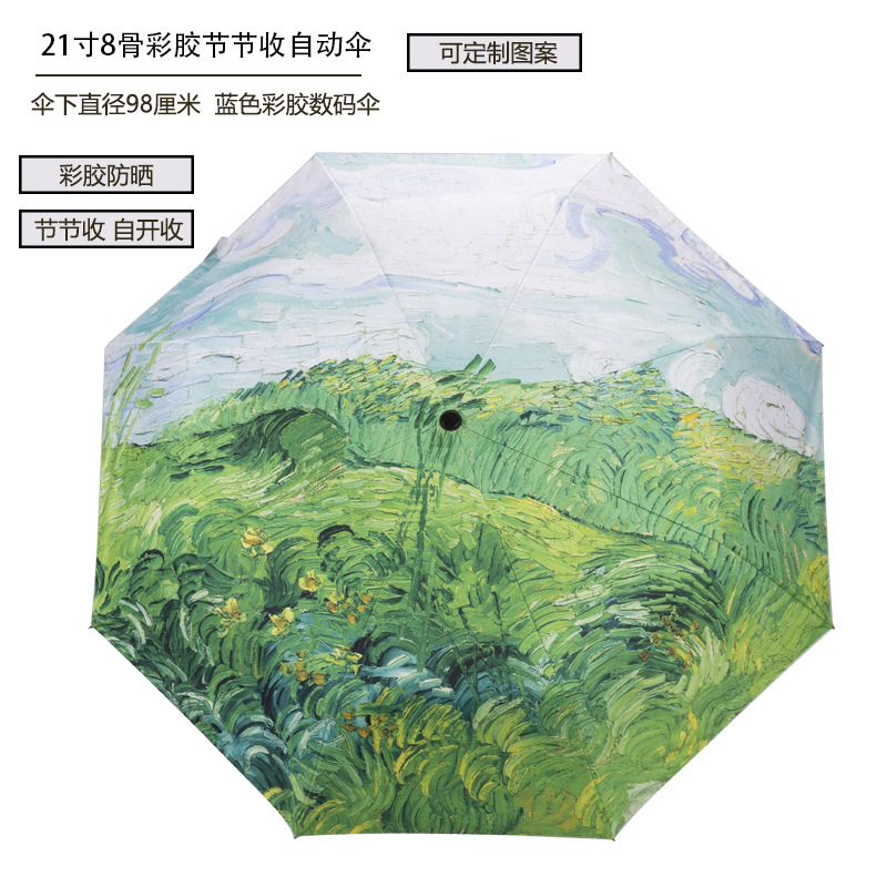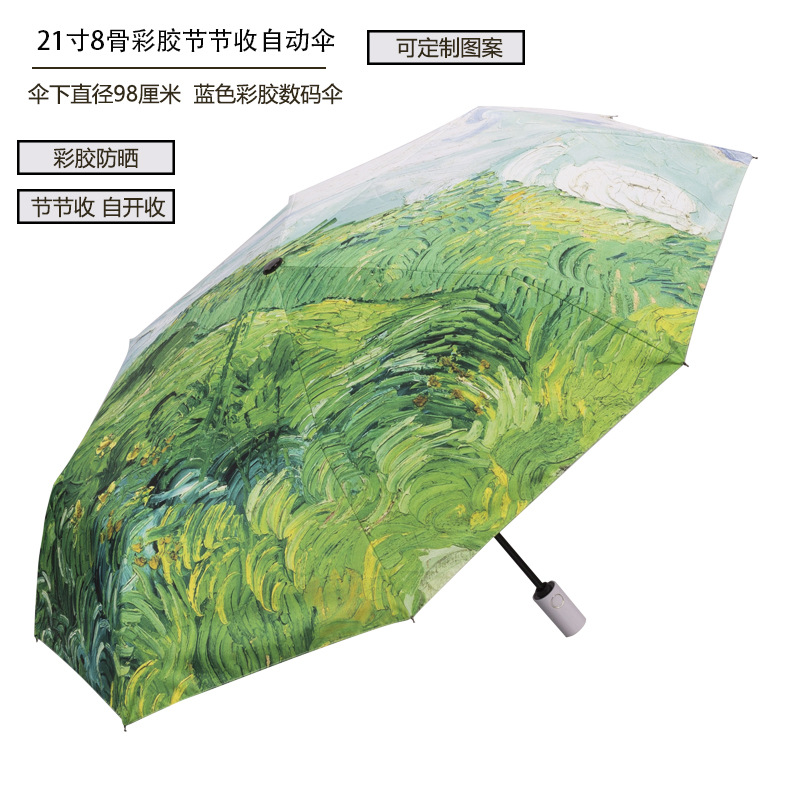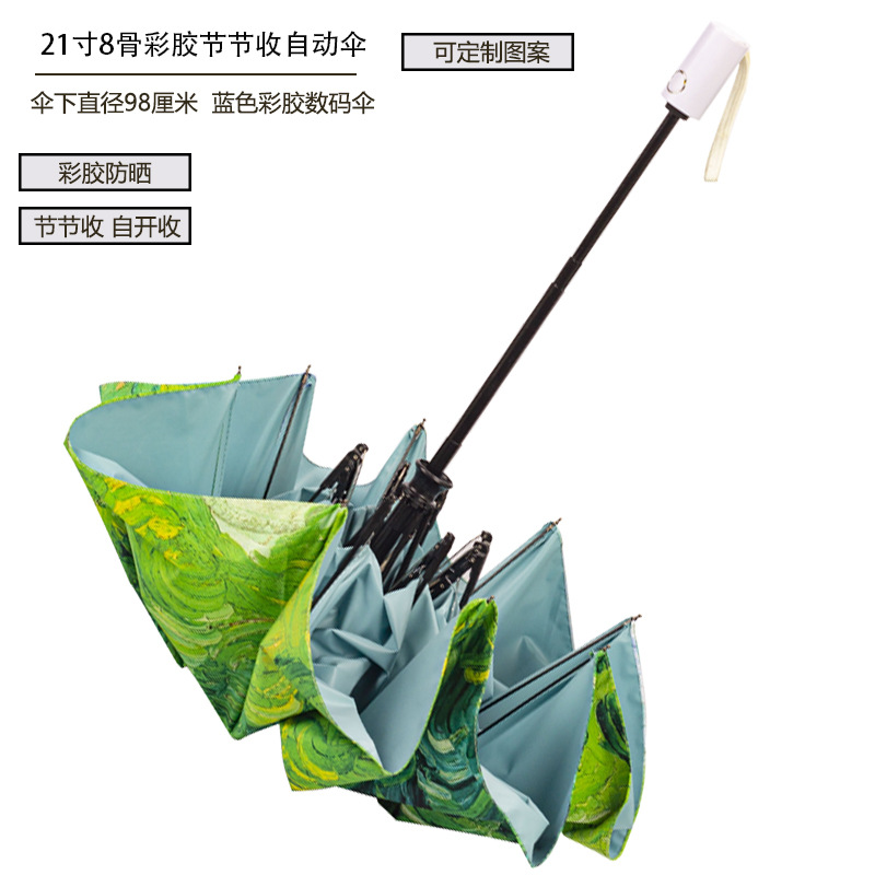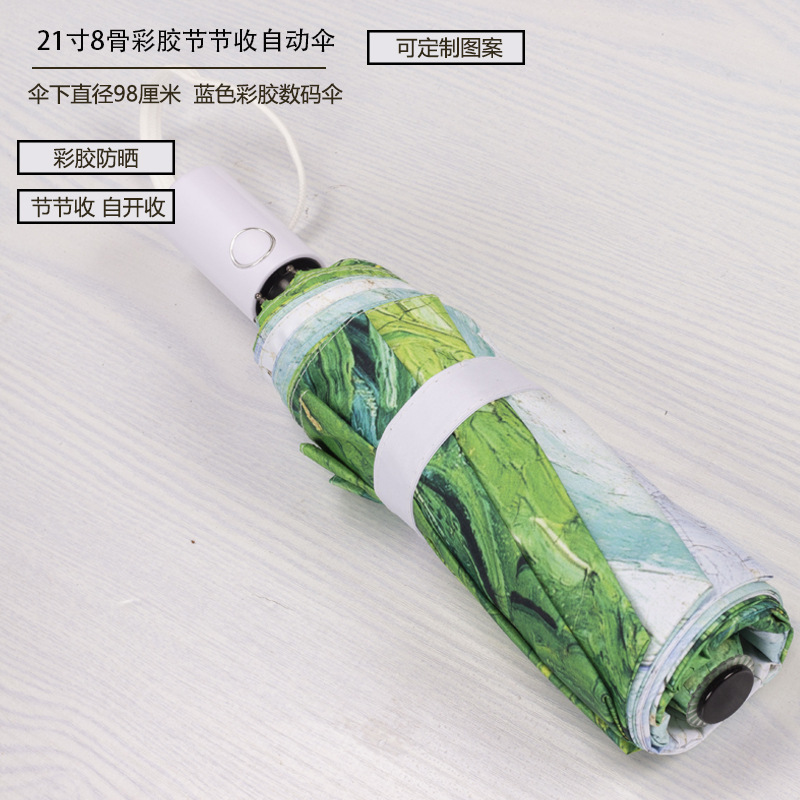 8본 컬러풀한 자동 우산, 점진적으로 접을 수 있고 소녀들이 사용하기에 적합하며 맞춤형 패턴 디지털 인쇄 전체 우산 인쇄스토어 가기