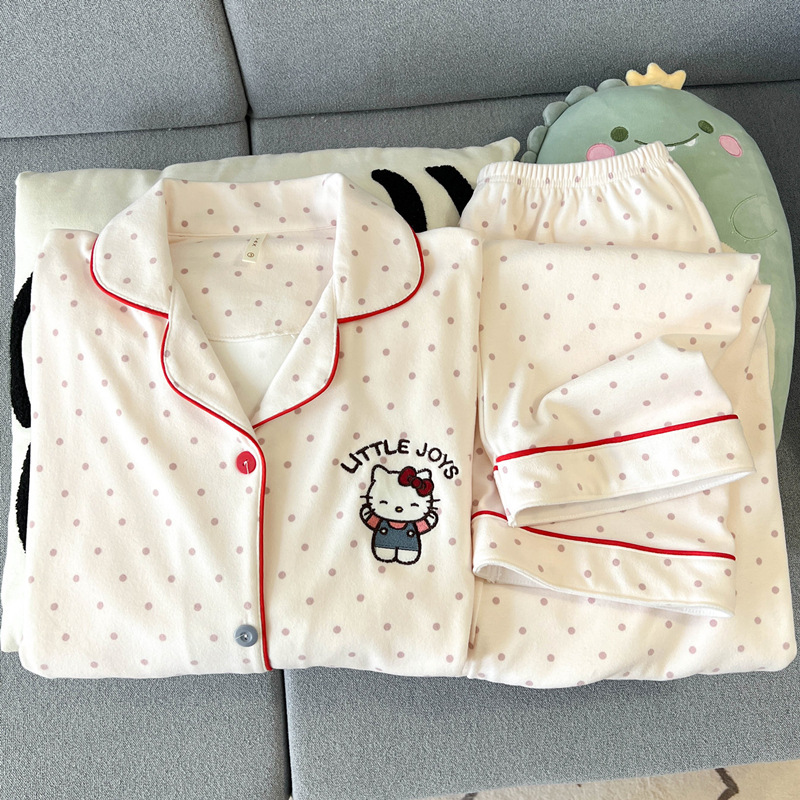 헬로 키티 벨벳 파자마 여성 봄과 가을 겨울 코랄 벨벳 플러스 벨벳 세트 두꺼운 섬 벨벳 홈 옷스토어 가기