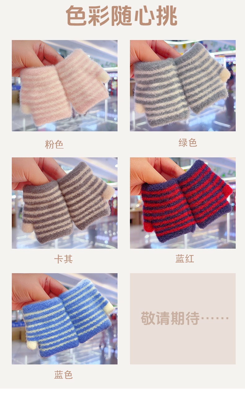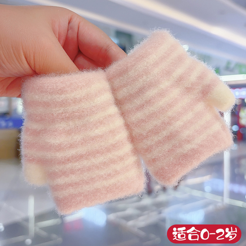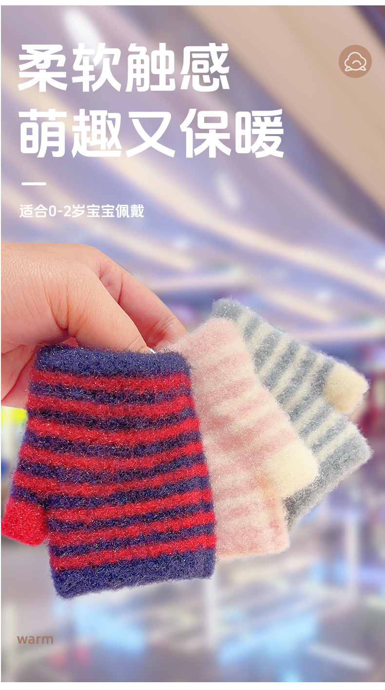 따뜻한 아기 장갑 0-3 아기 감기 방지 냉동 방지 어린이 캔디 컬러 반 손가락 줄무늬 어린이 장갑스토어 가기