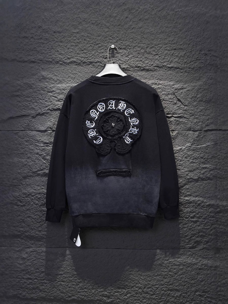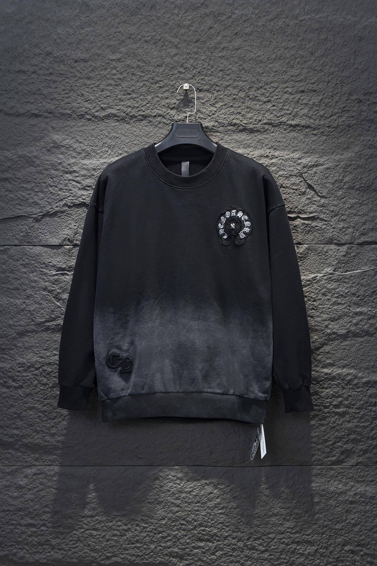 크롬 하트 크로우 그라디언트 스프레이 말 미끄러지는 중공업 스티커 수놓은 물 남성과 여성의 기본 라운드 넥 스웨터스토어 가기