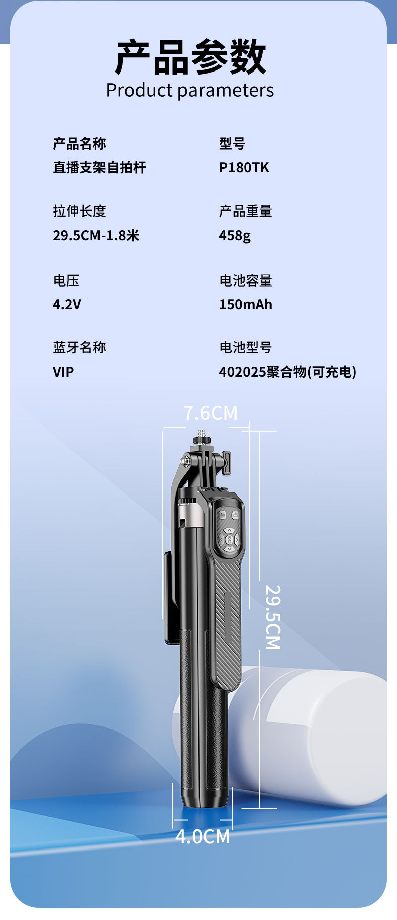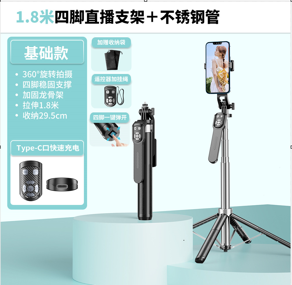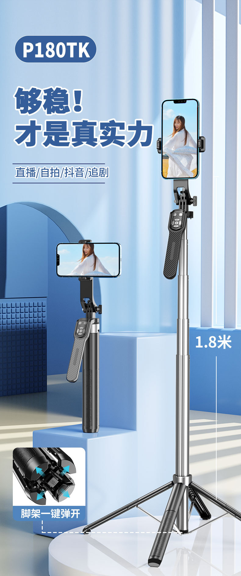 P180TK 휴대 전화 셀카 스틱 재고 도매 휴대용 야외 바닥 스탠드 휴대용 블루투스 셀카 공장스토어 가기