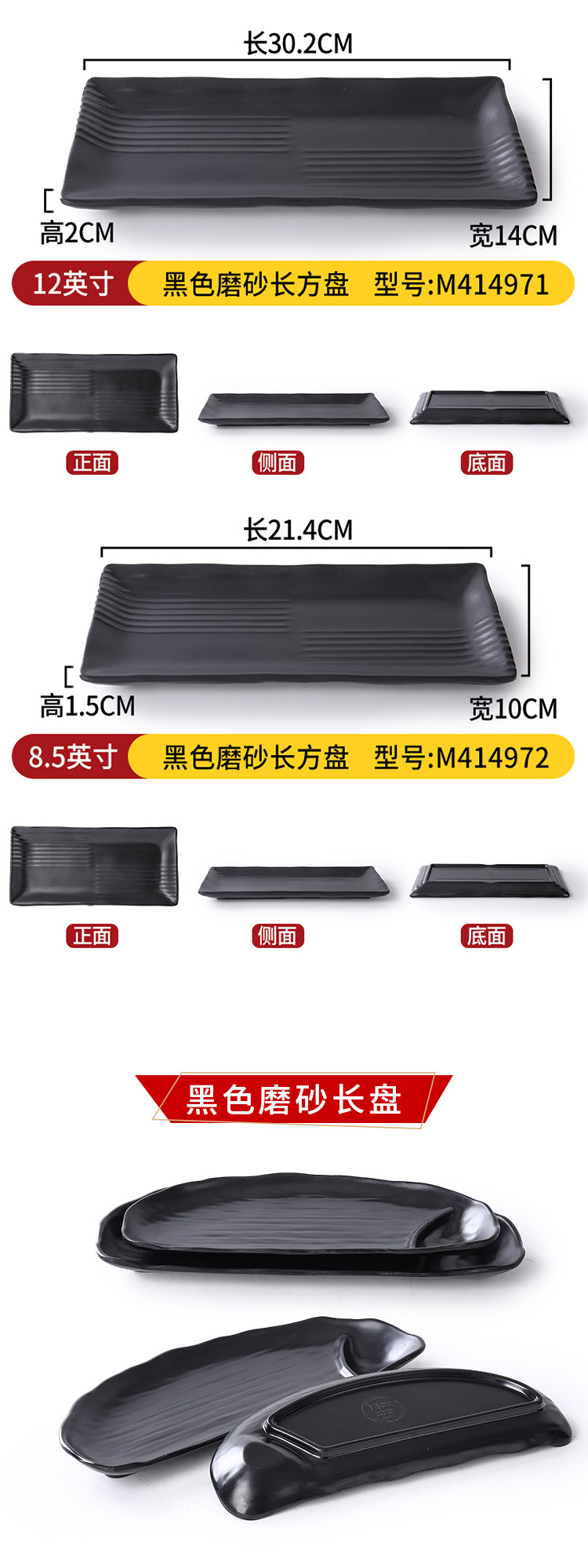 • 12inch 블랙 반투명 직사각형 플레이트 M414971
