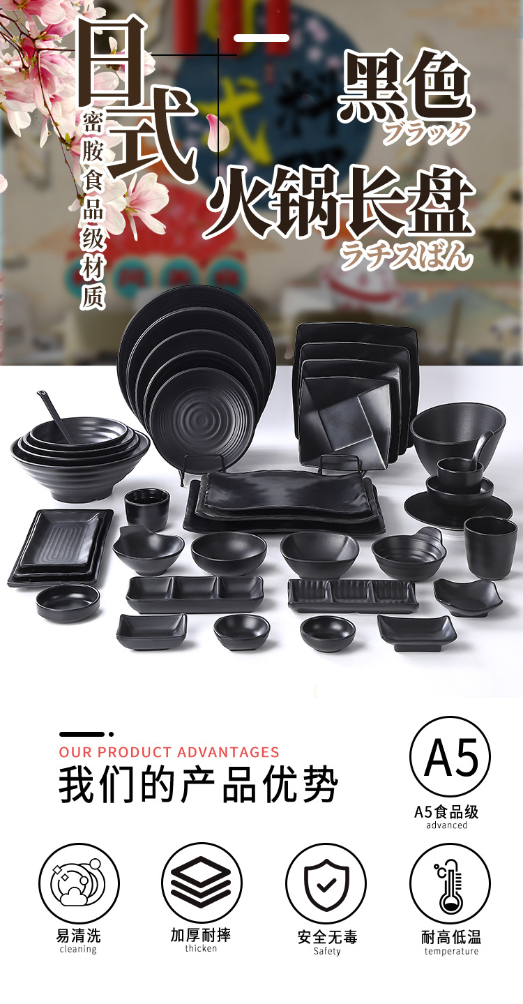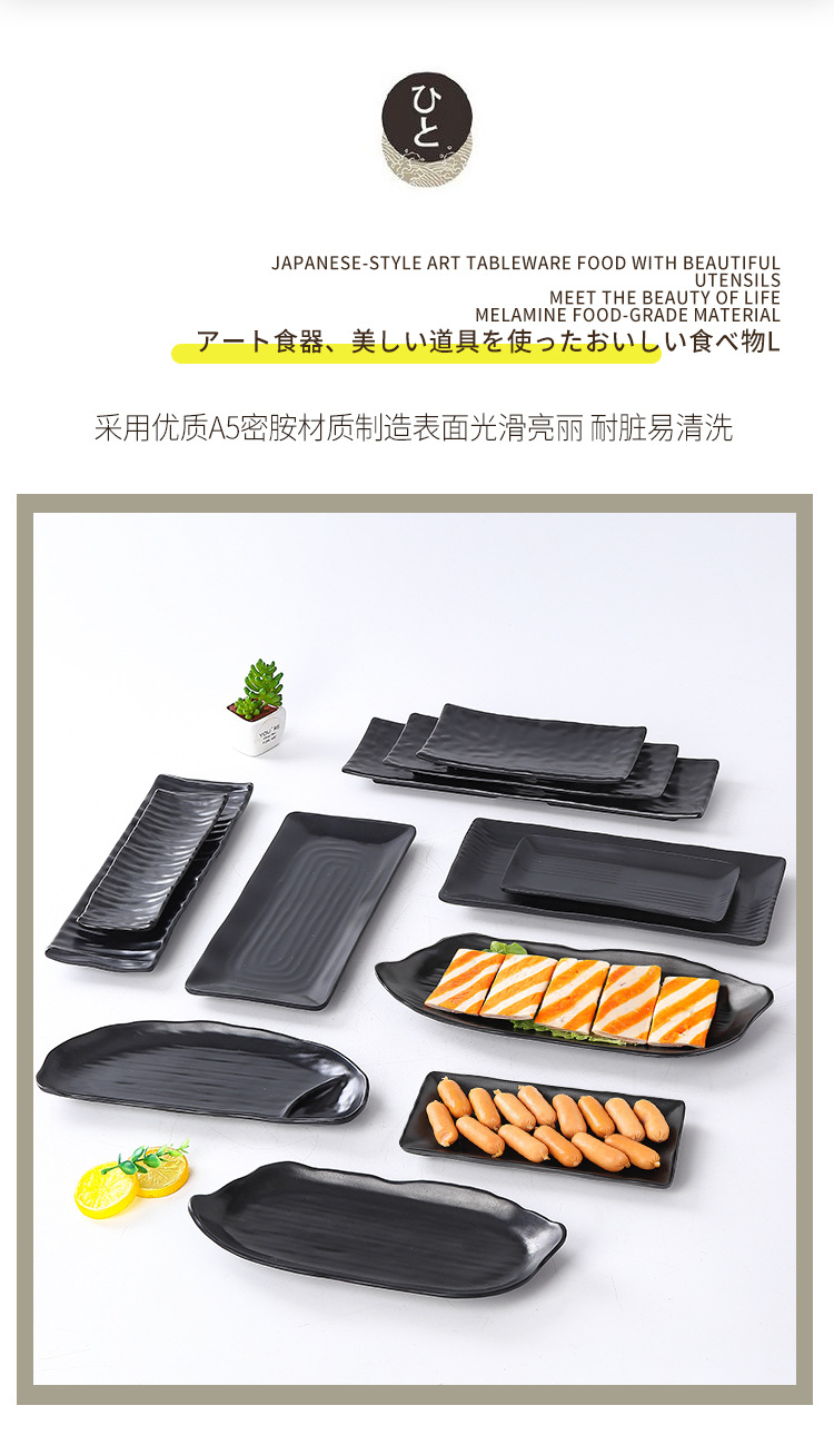 일본식 쇠고기 냄비 식기 반찬 접시 상업용 멜라민 바베큐 긴 접시 플라스틱 스시 바베큐 차가운 요리