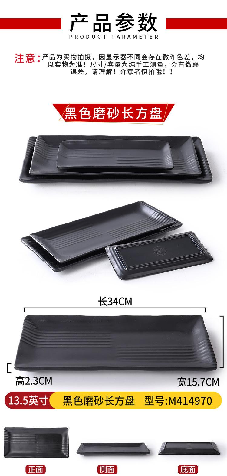 • 13.5inch 블랙 반투명 직사각형 플레이트 M414970