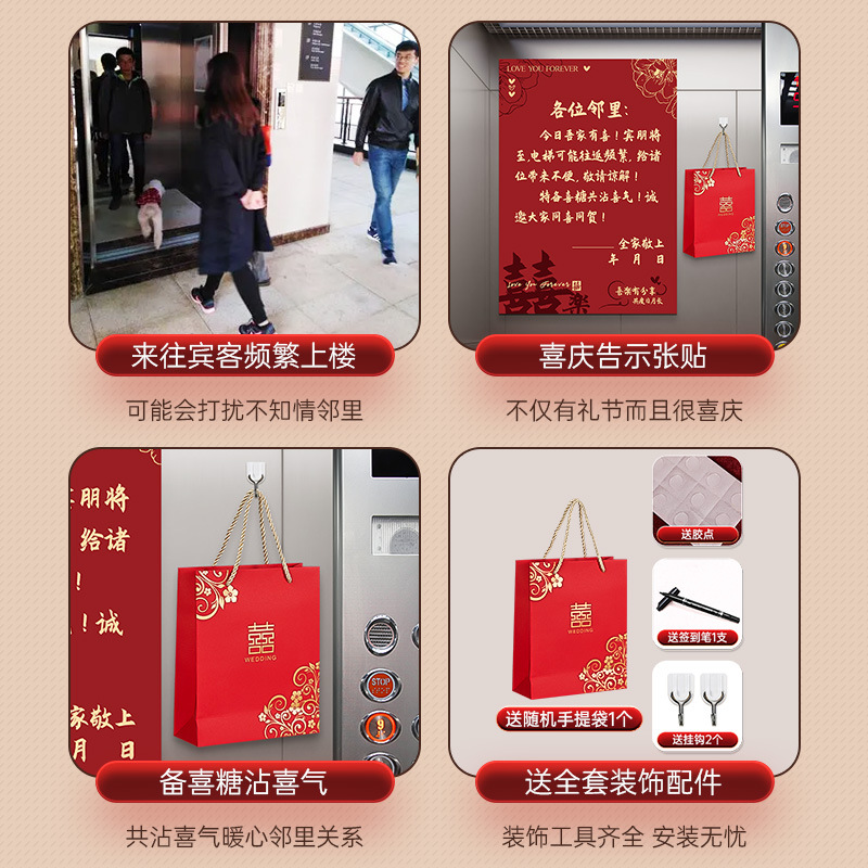 웨딩 엘리베이터 알림 행복한 단어 스티커 유형 단어 약혼 결혼식 창조적 인 레이아웃 장식 웨딩 용품 새로운 스타일스토어 가기
