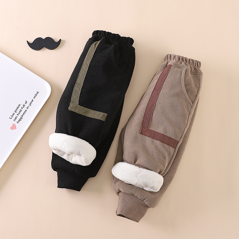 아기의 캐시미어 바지 소년 가을과 겨울 새로운 어린이 캐주얼 발 바느질 편지 면 어린이 면화 바지스토어 가기