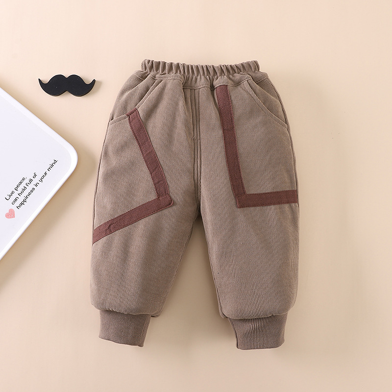 아기의 캐시미어 바지 소년 가을과 겨울 새로운 어린이 캐주얼 발 바느질 편지 면 어린이 면화 바지
