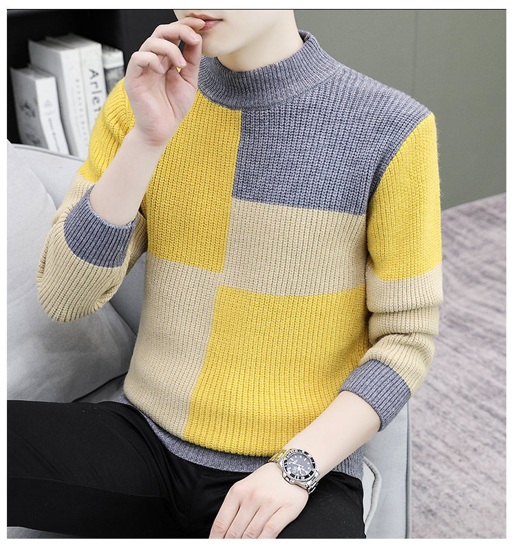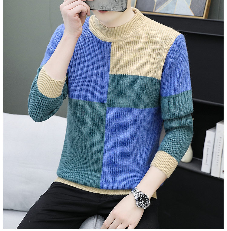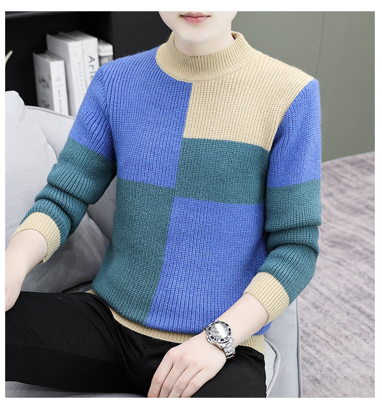 국경 간 대외 무역 AliExpress 니트웨어 남자의 가을과 겨울 두꺼운 니트 슬리브 스웨터 하프 터틀넥 니트 스웨터 남자스토어 가기