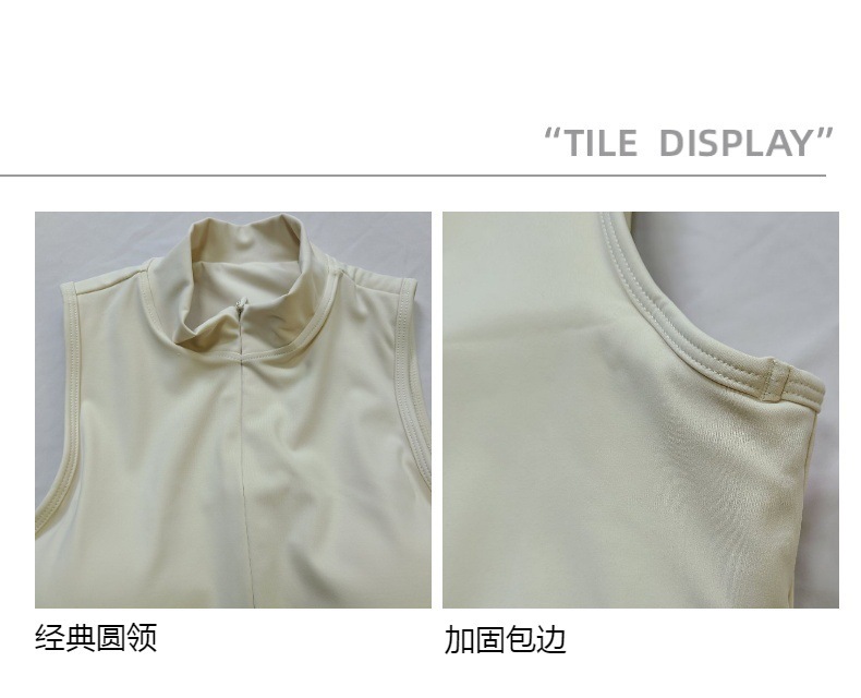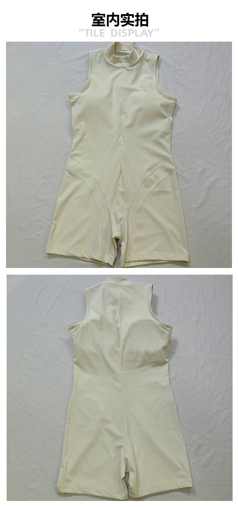 유럽과 미국의 민소매 지퍼 원피스 피트니스 의류 슬림핏 하이 탄성 복부 타이트 통기성 힙합 원피스 요가 옷