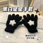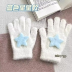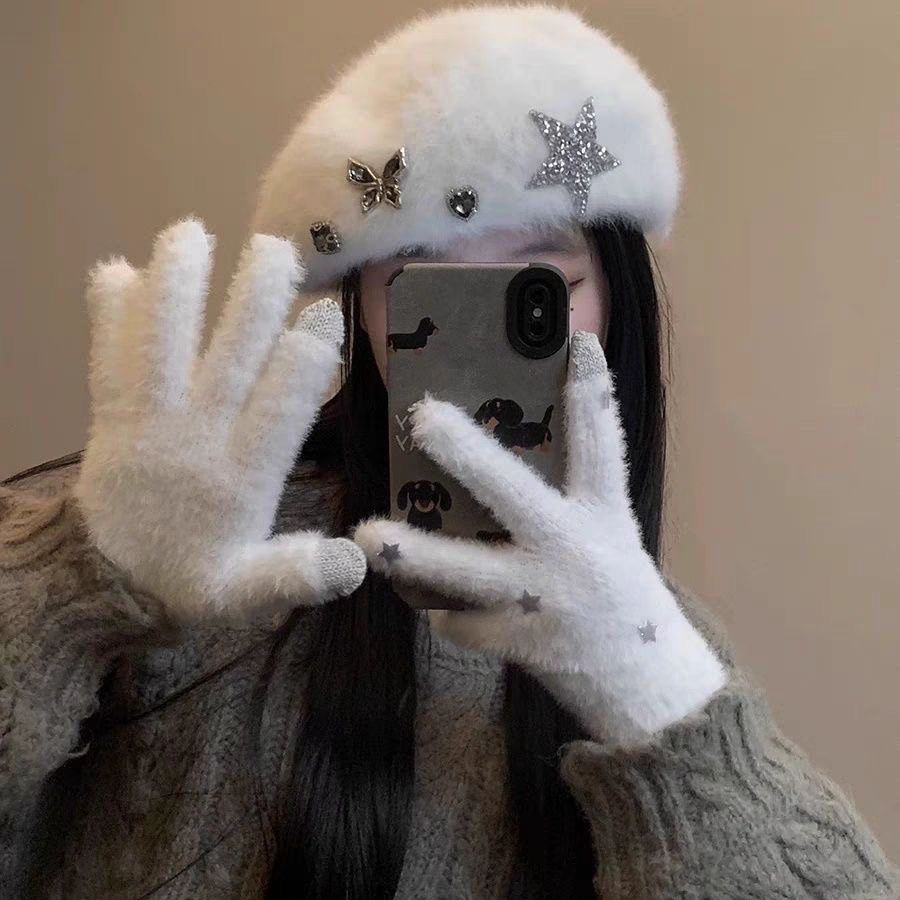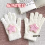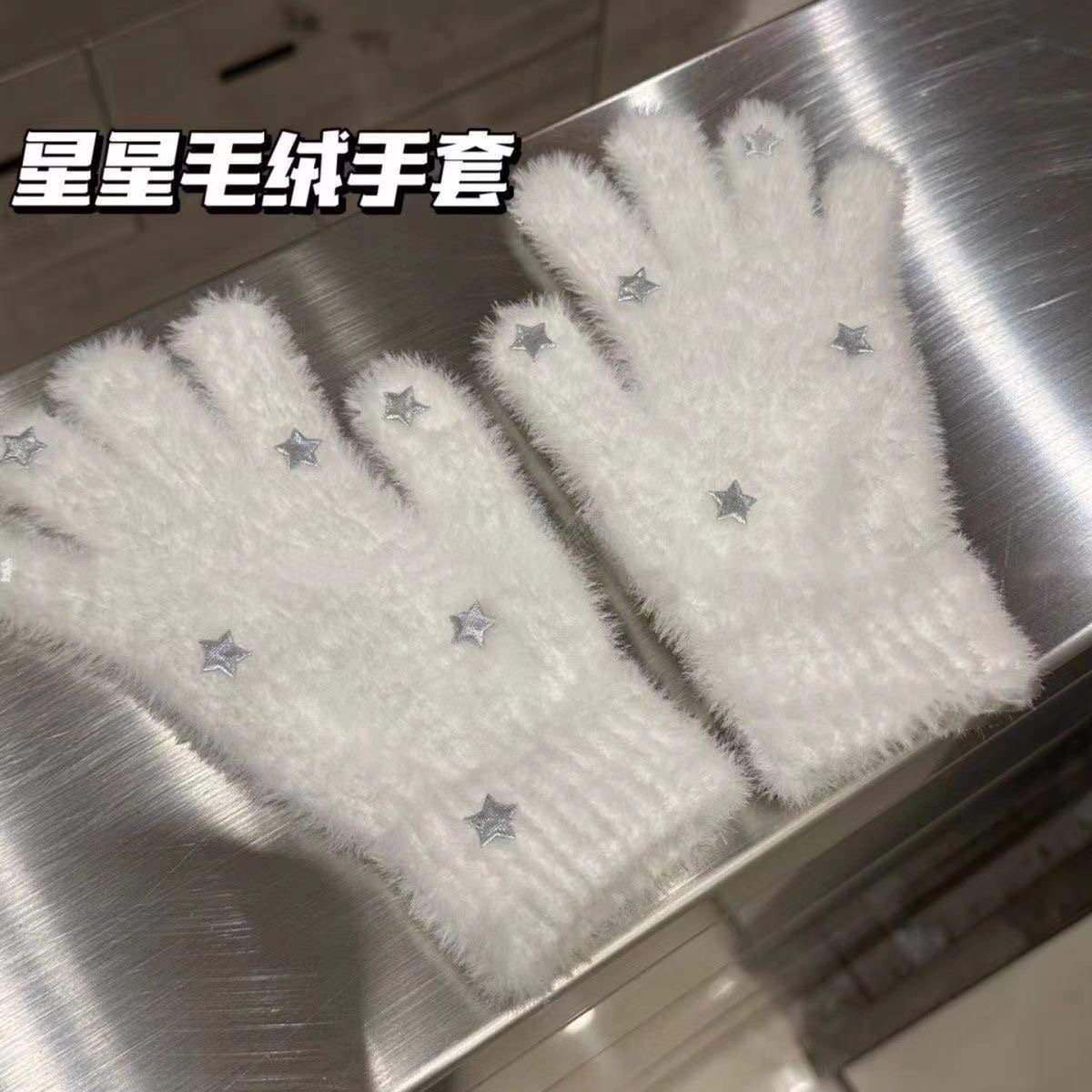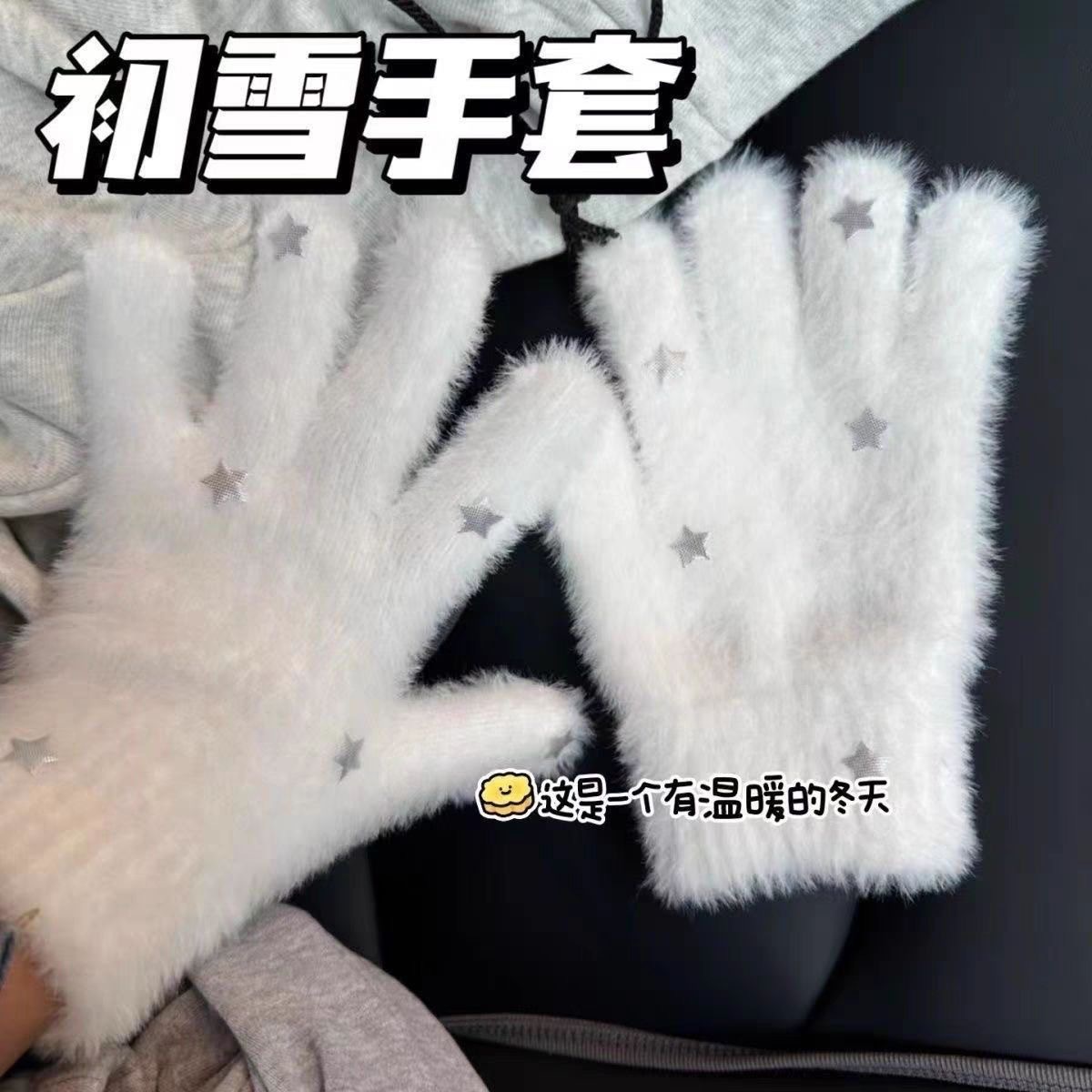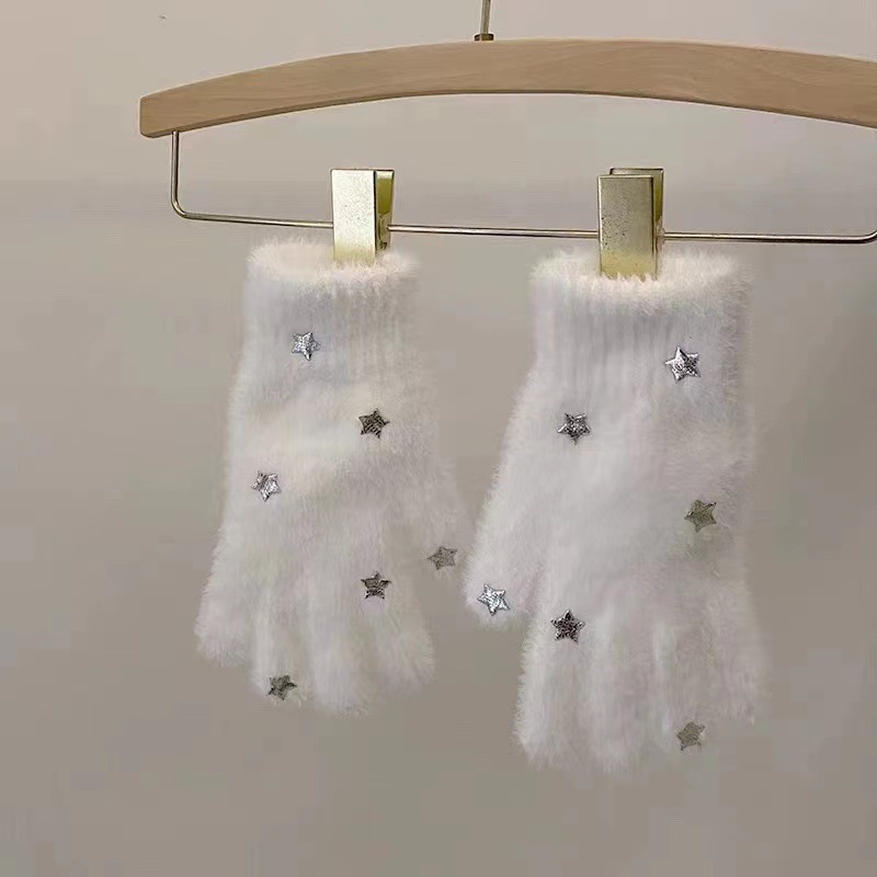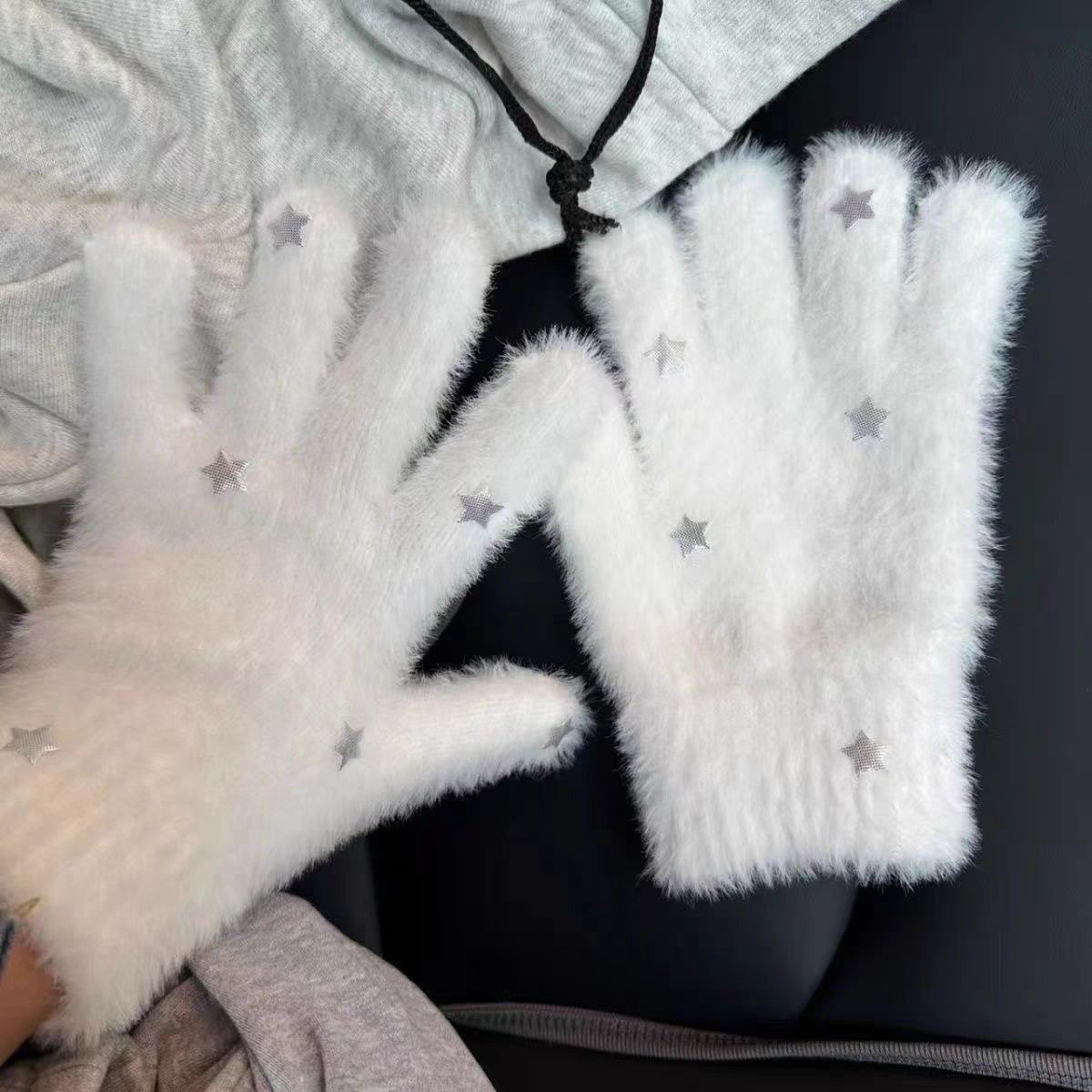 여성용 겨울 장갑, 두꺼운 인조 밍크털, 심플한 별 모양, 플러시 탄성 장갑, 니트 학생용 보온 장갑