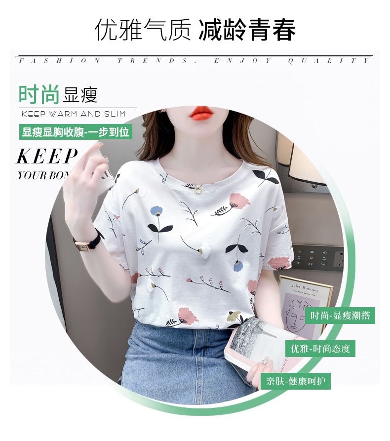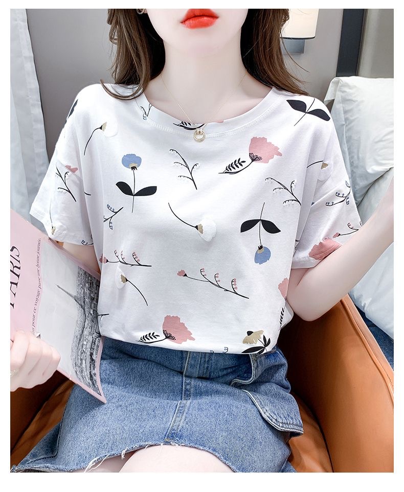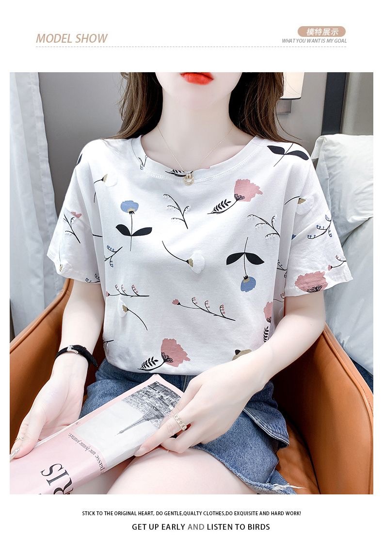 반팔 티셔츠 여성 최고 여름 새로운 느슨한 플러스 사이즈 작은 신선한 디자인 감각 틈새 티셔츠 꽃 셔츠스토어 가기