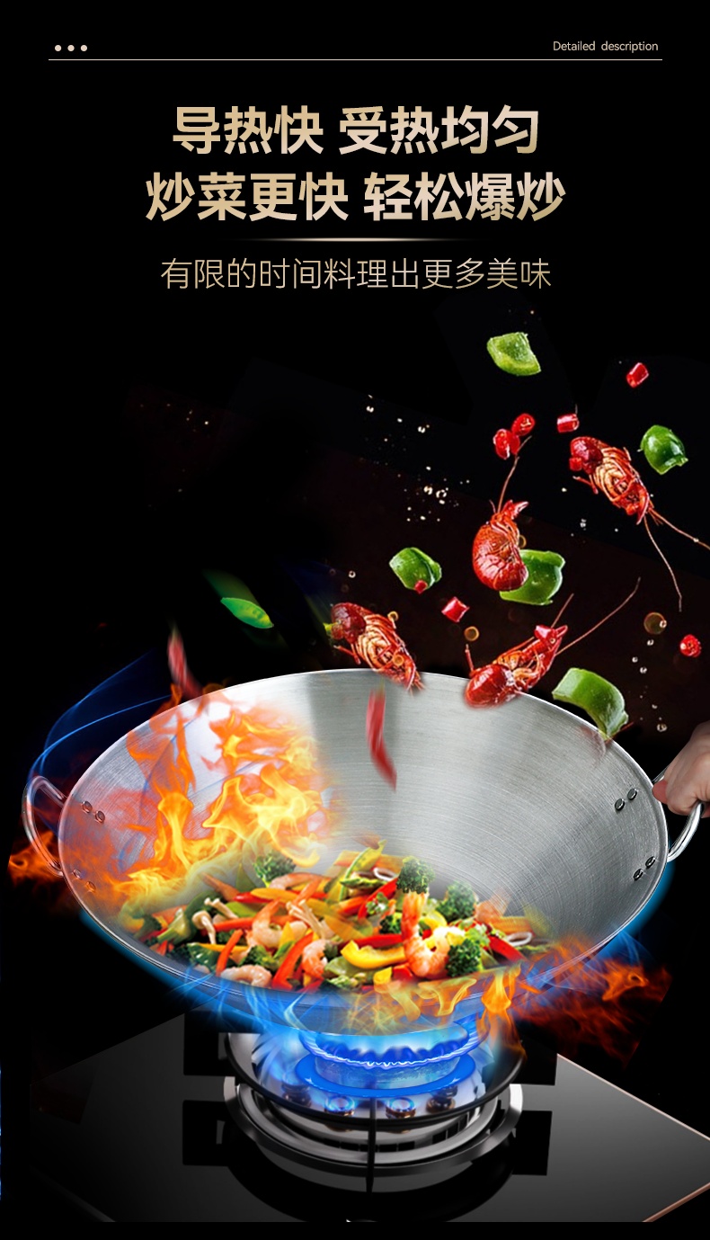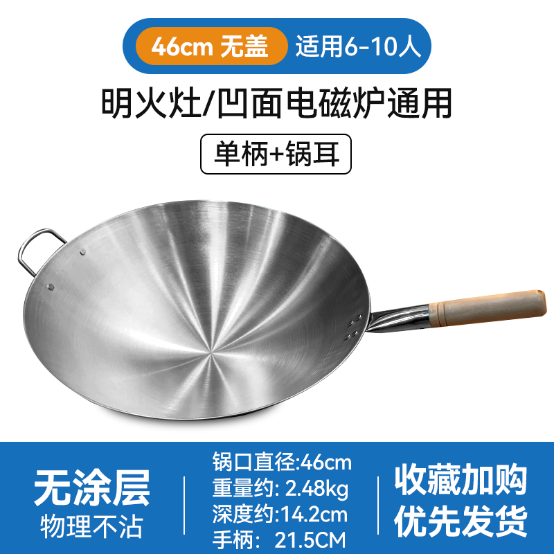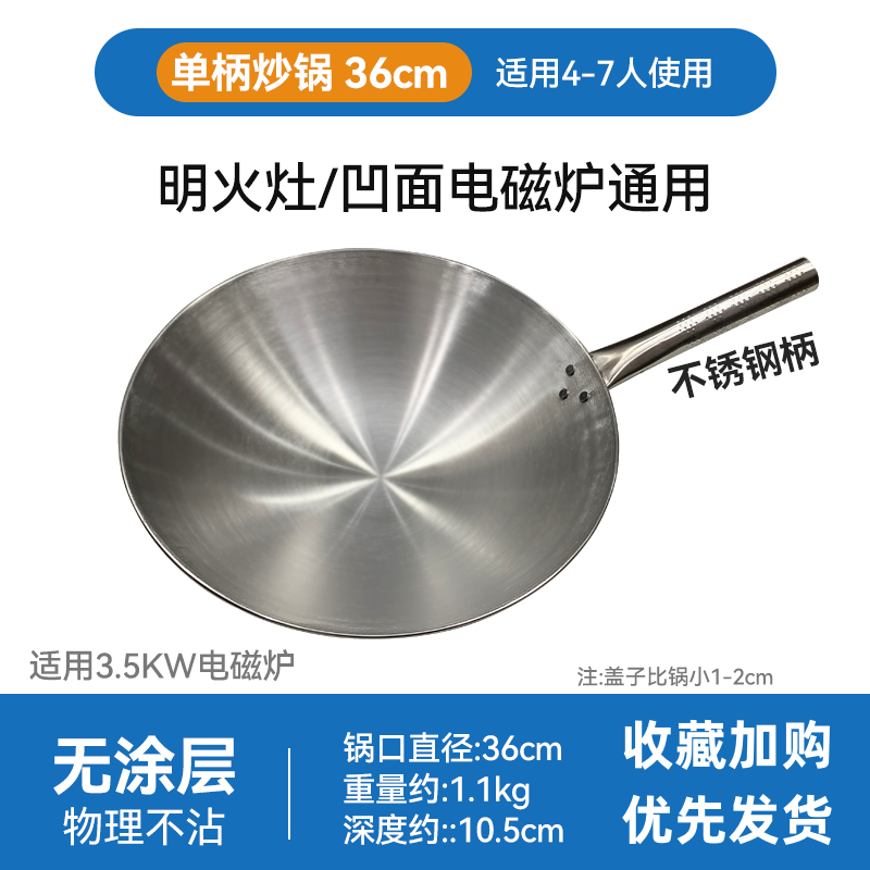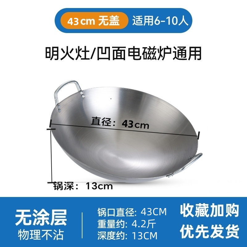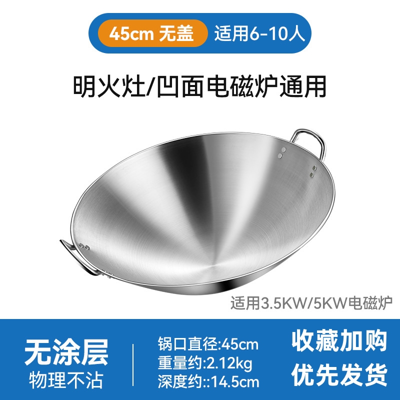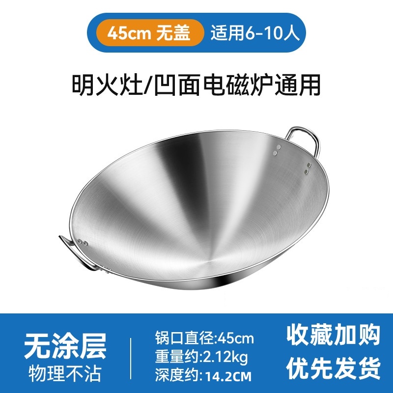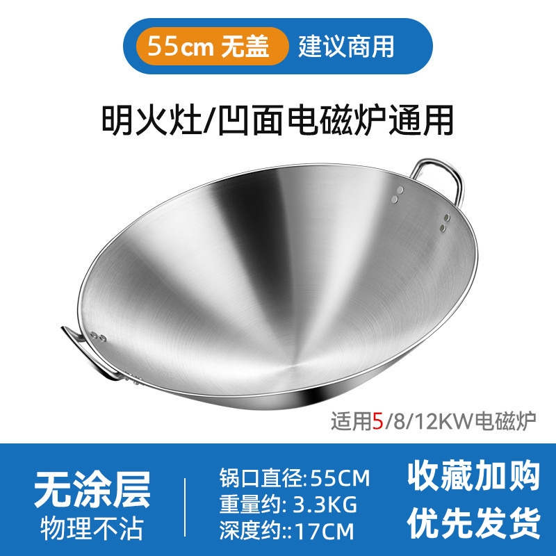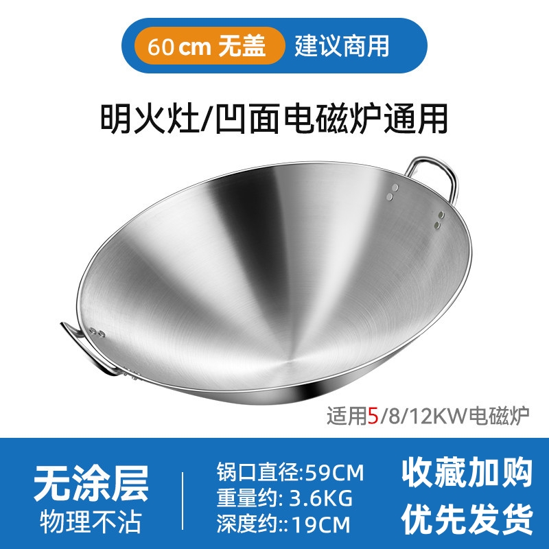 상업용 오목한 유도 밥솥 특수 냄비 호텔 웍 유도 밥솥 코팅되지 않은 스테인레스 스틸 붙지 않는 팬 둥근 바닥스토어 가기