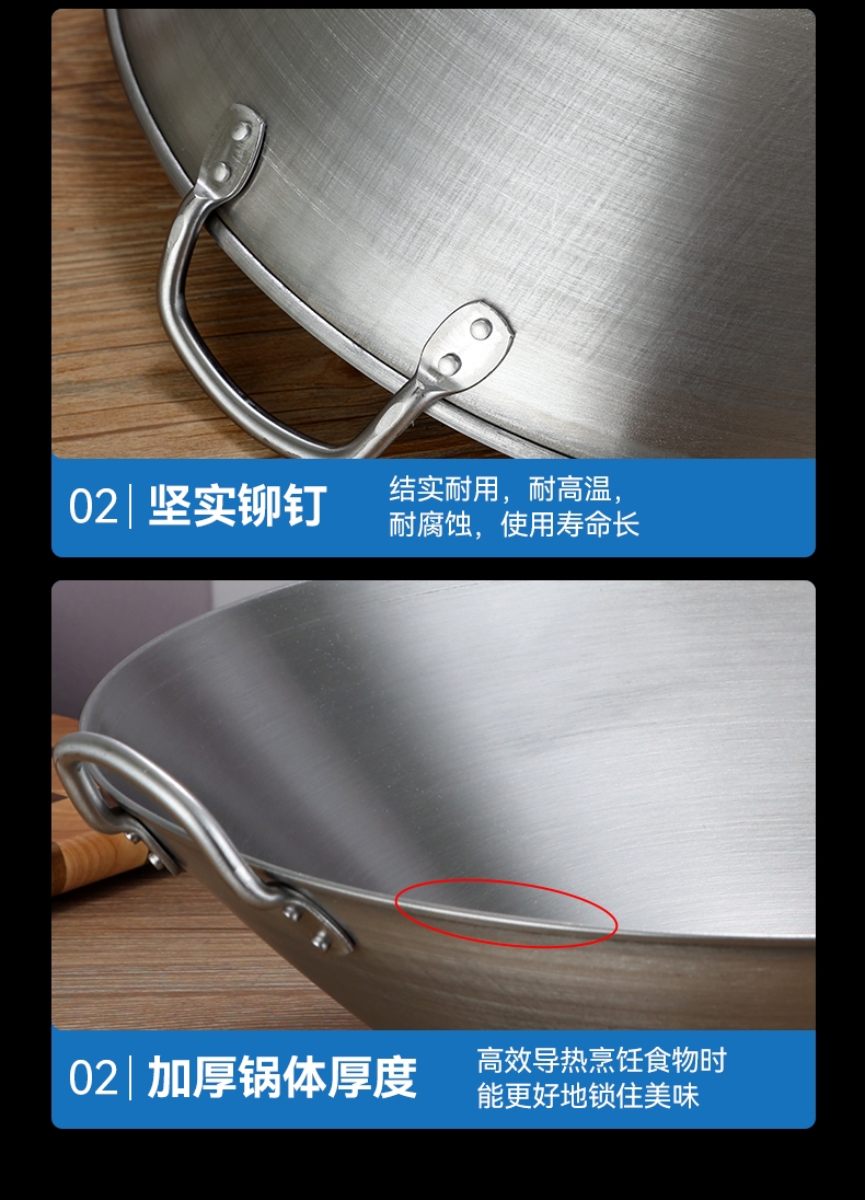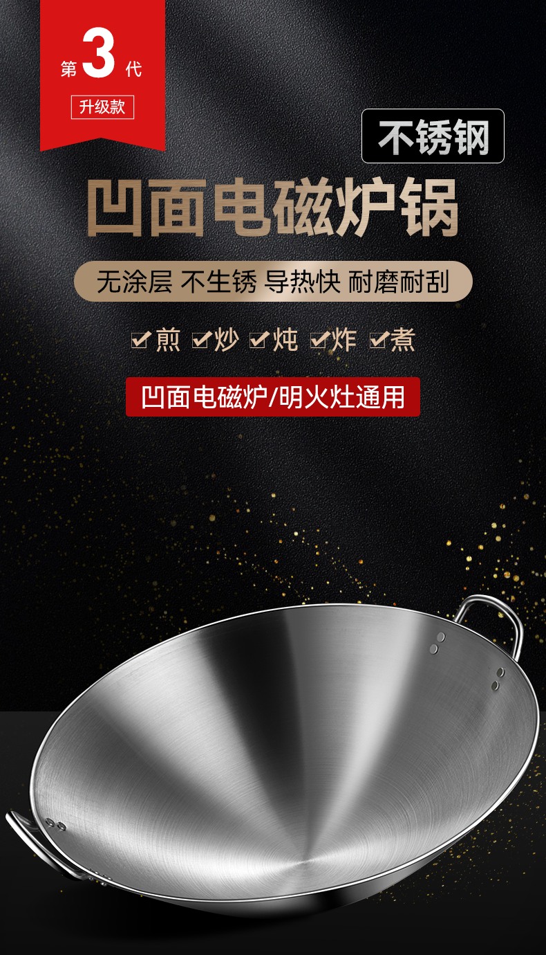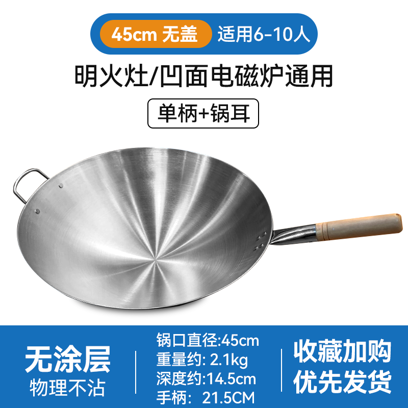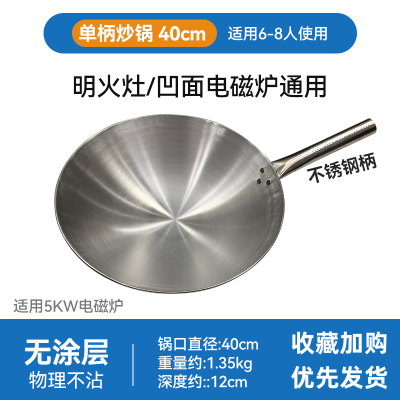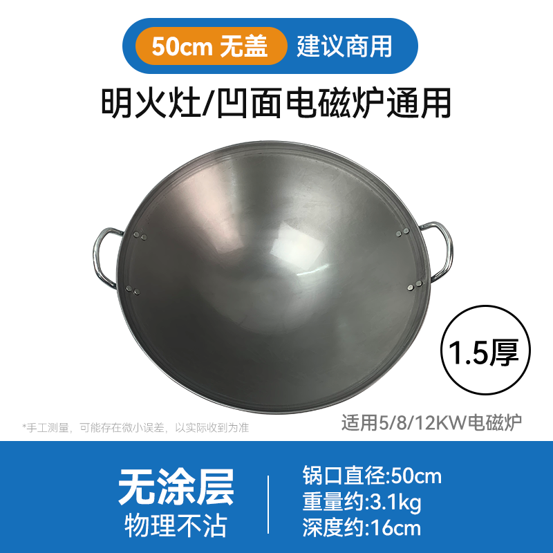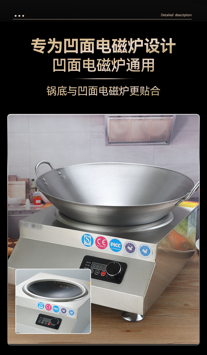 상업용 오목한 유도 밥솥 특수 냄비 호텔 웍 유도 밥솥 코팅되지 않은 스테인레스 스틸 붙지 않는 팬 둥근 바닥