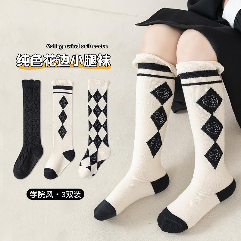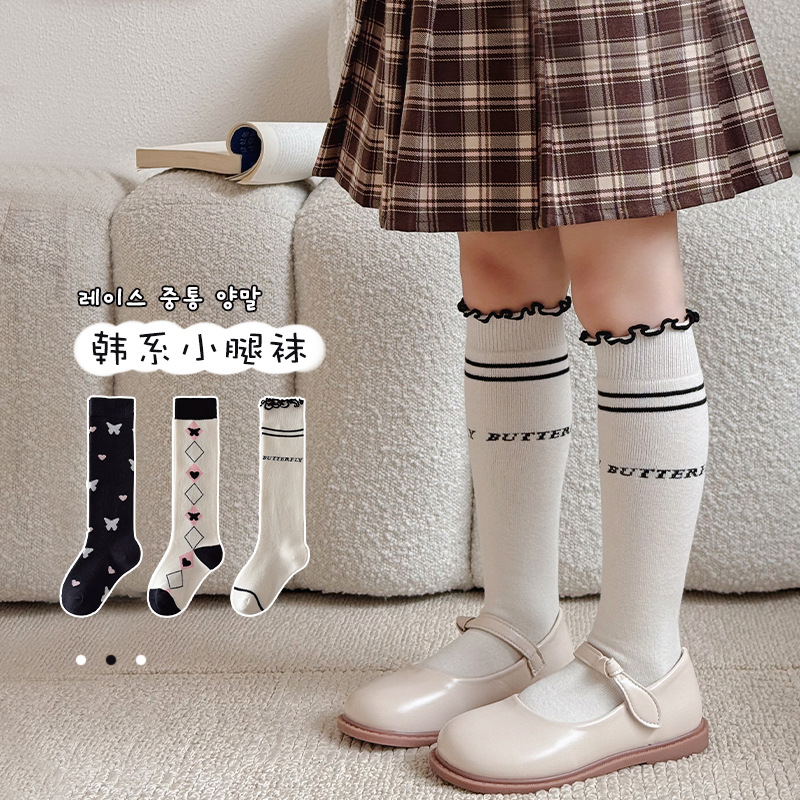 소녀를위한 봄과 가을 양말 Lolita 송아지 양말 가을 귀 테두리 스타킹 어린이 높은 스타킹스토어 가기