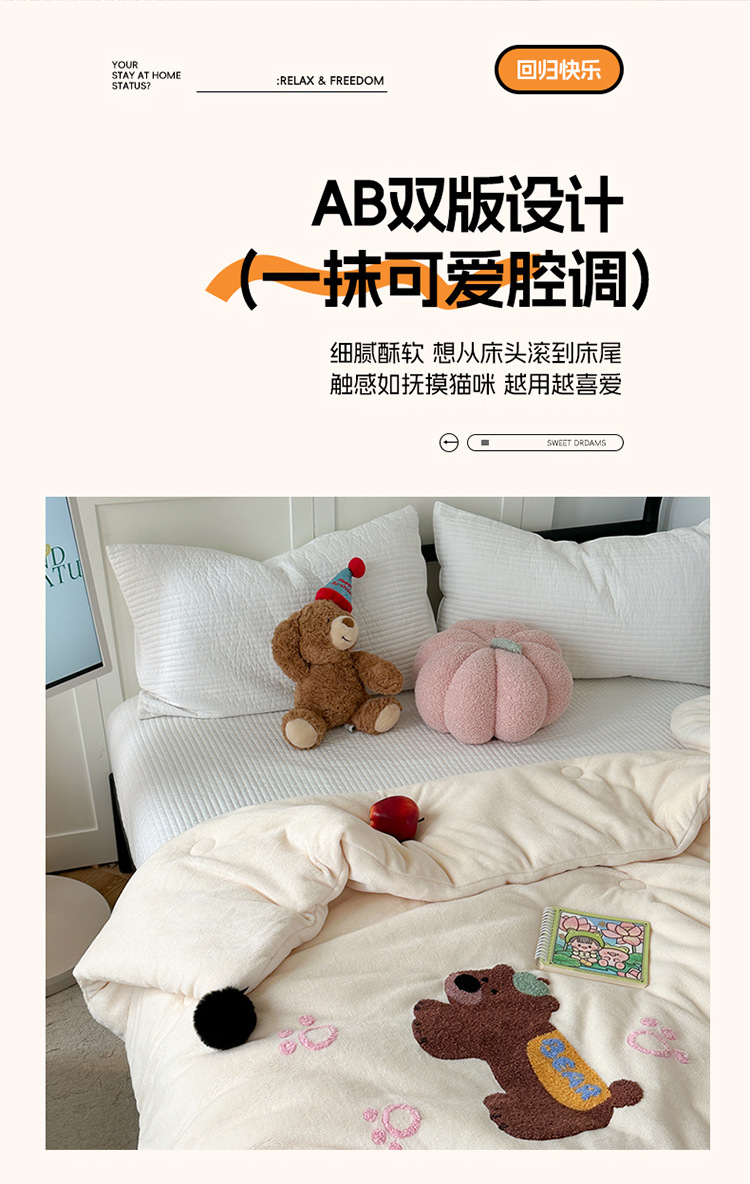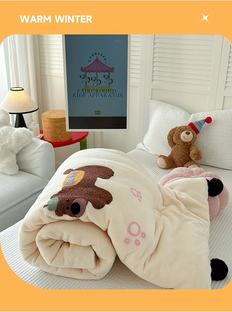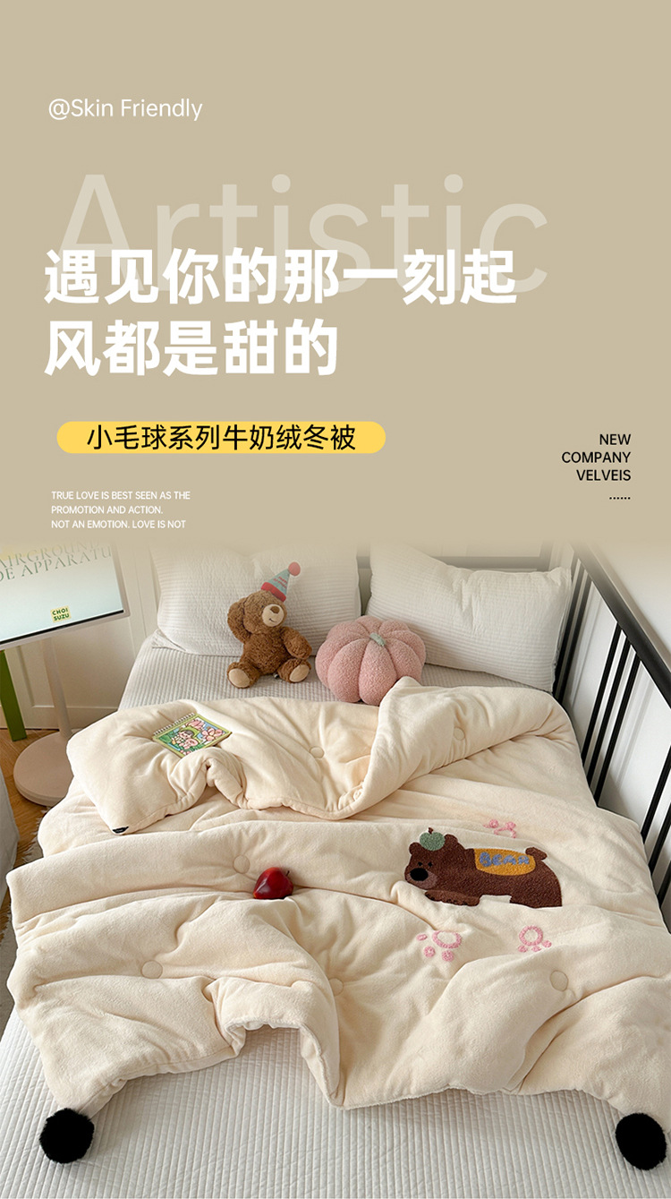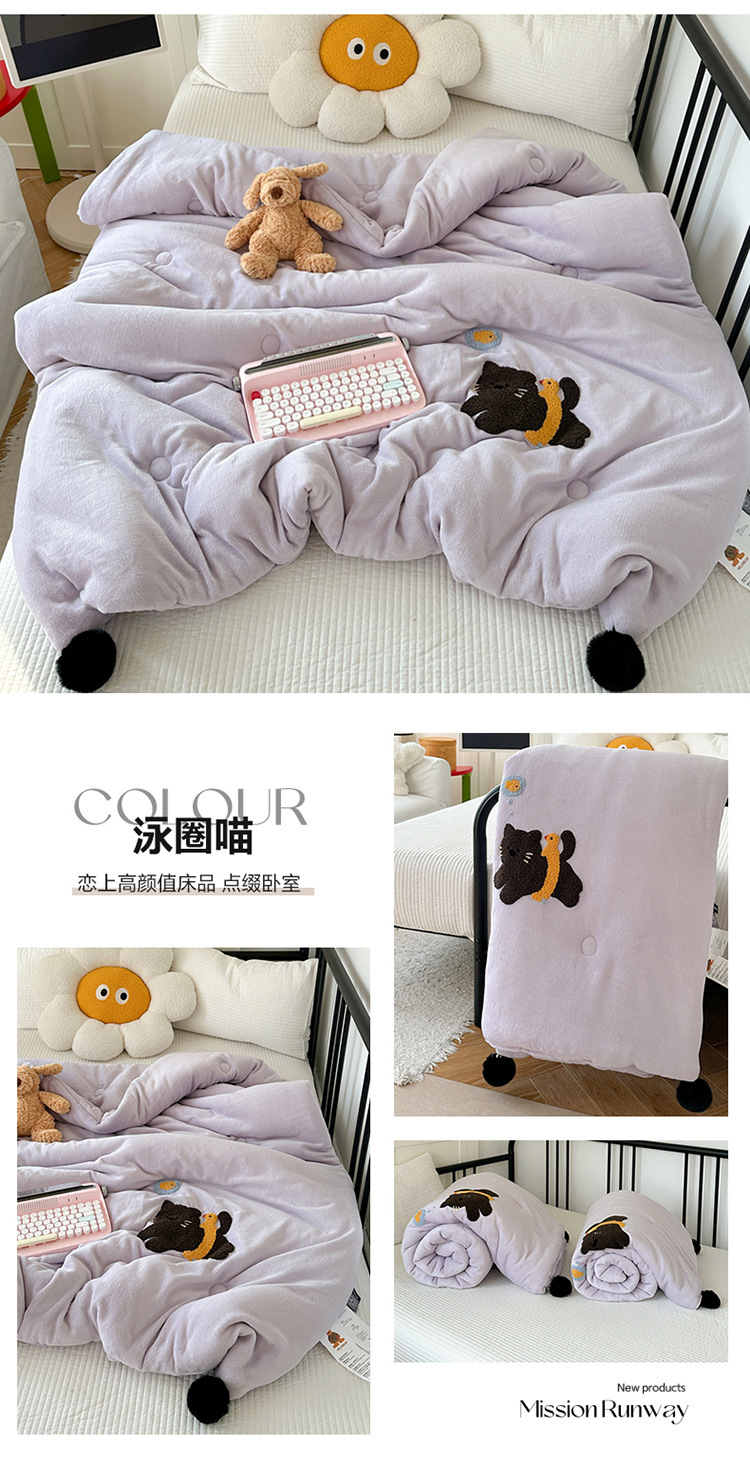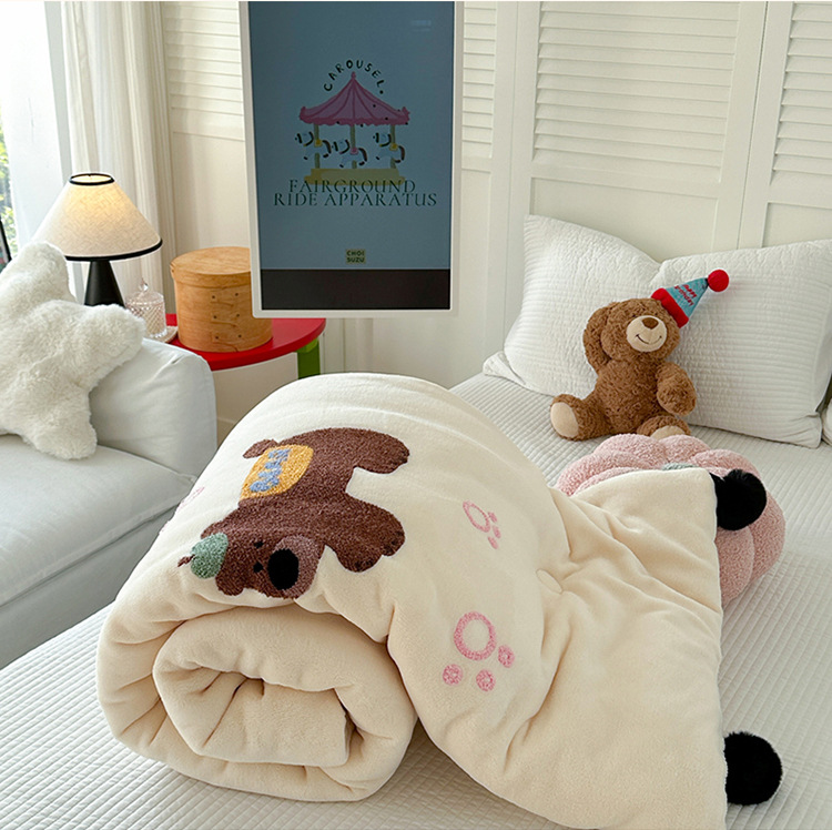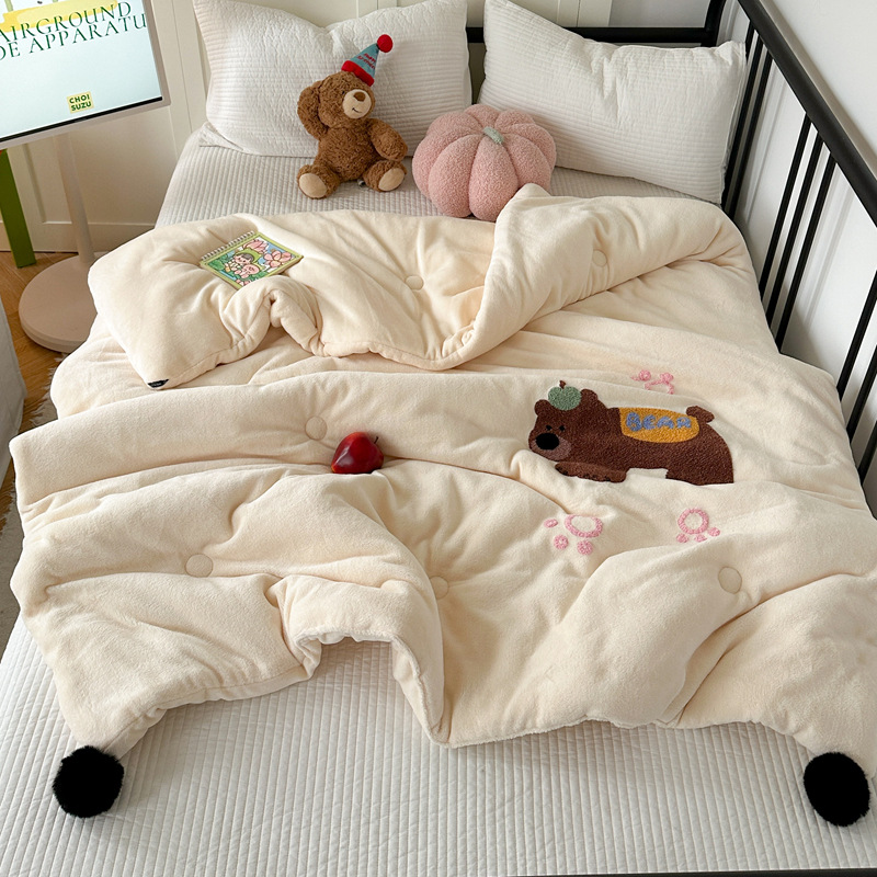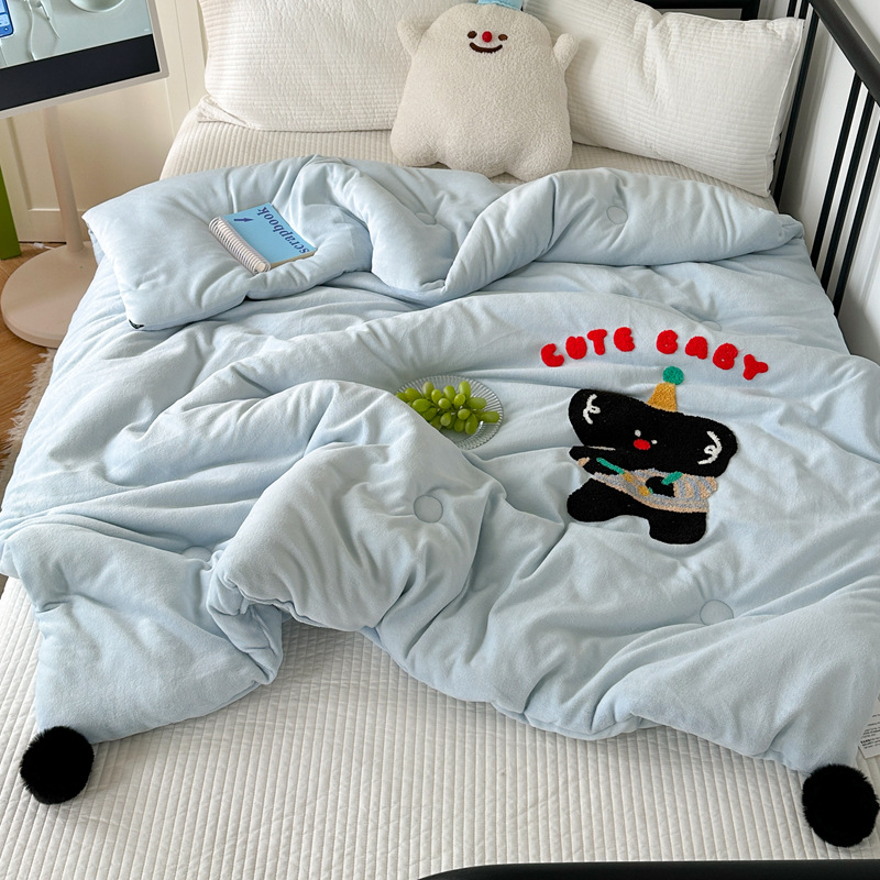 겨울 작은 모피 볼 타월 자수 우유 양털 퀼트 학생 기숙사 퀼트 두꺼운 따뜻한 양면 기모 겨울 퀼트 코어