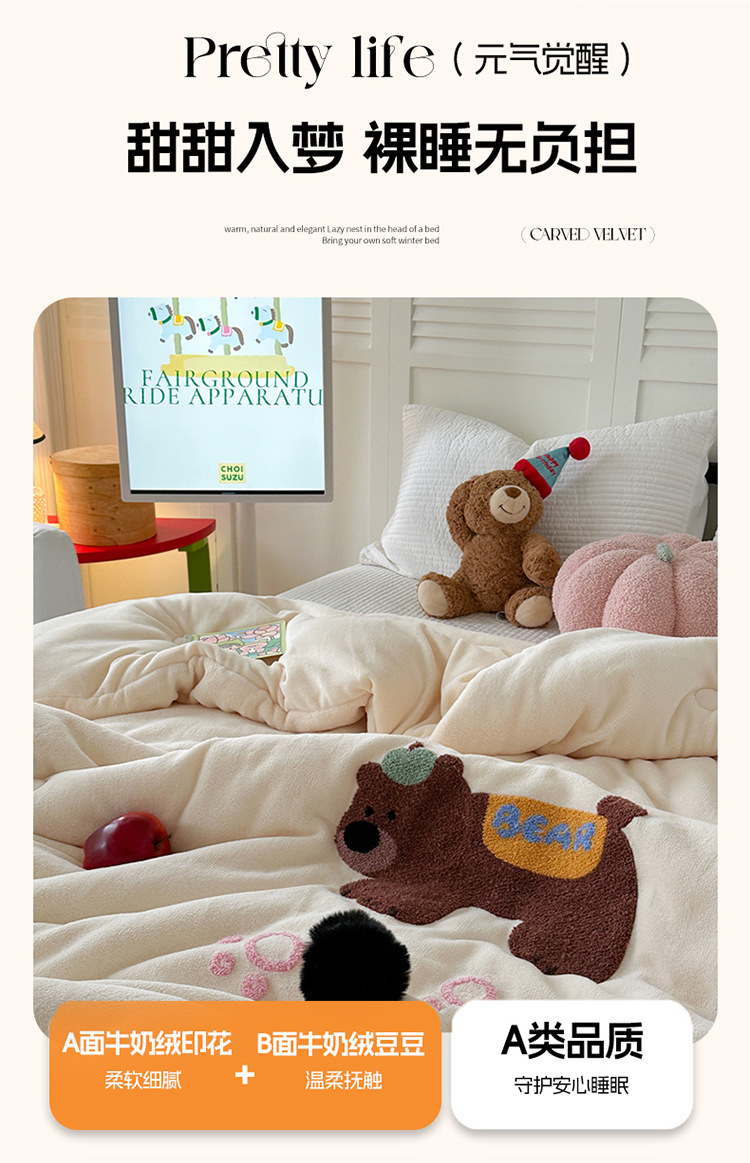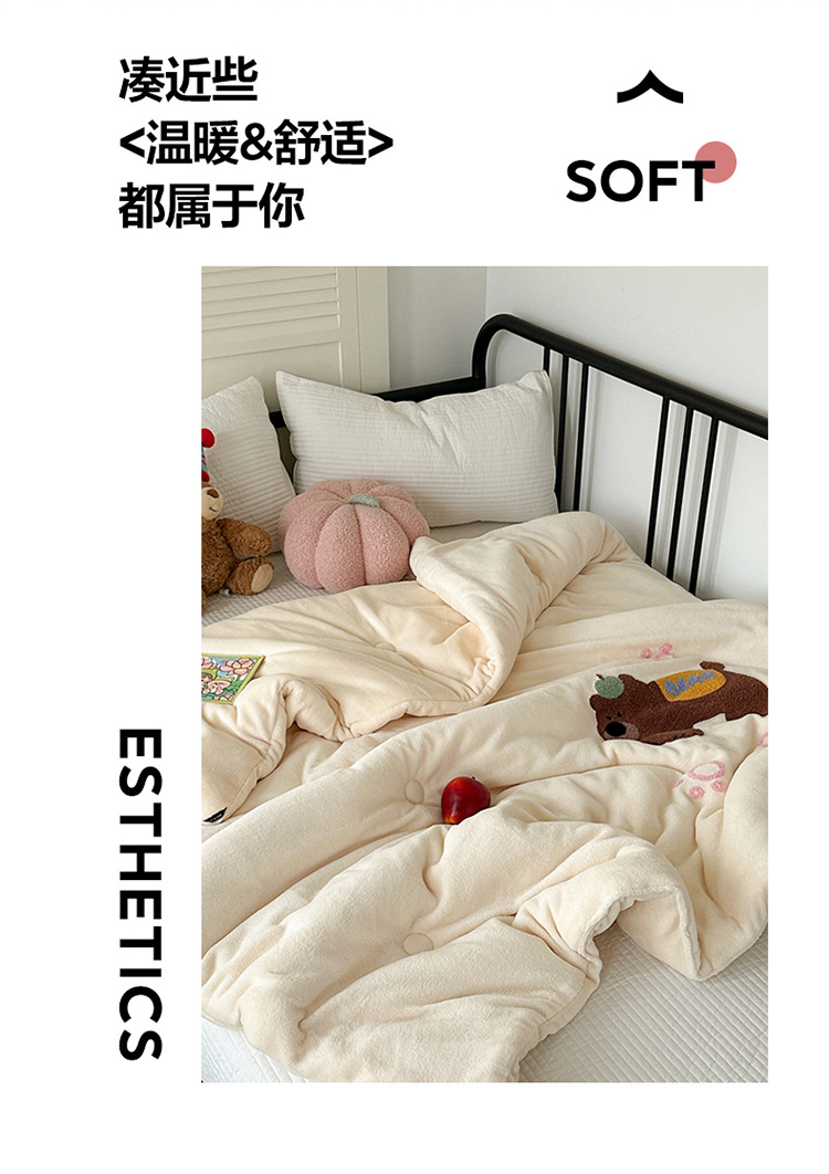 겨울 작은 모피 볼 타월 자수 우유 양털 퀼트 학생 기숙사 퀼트 두꺼운 따뜻한 양면 기모 겨울 퀼트 코어스토어 가기