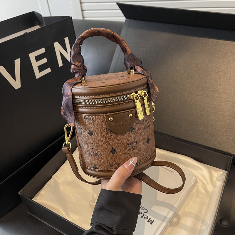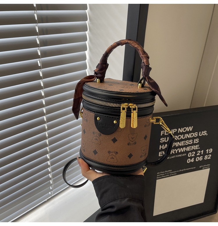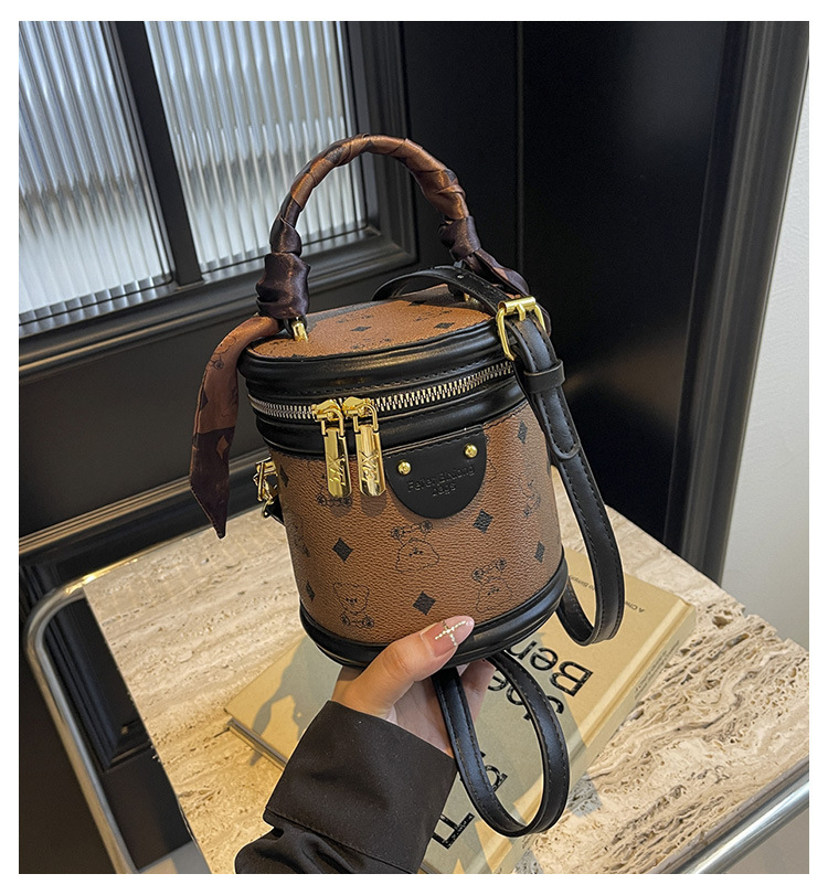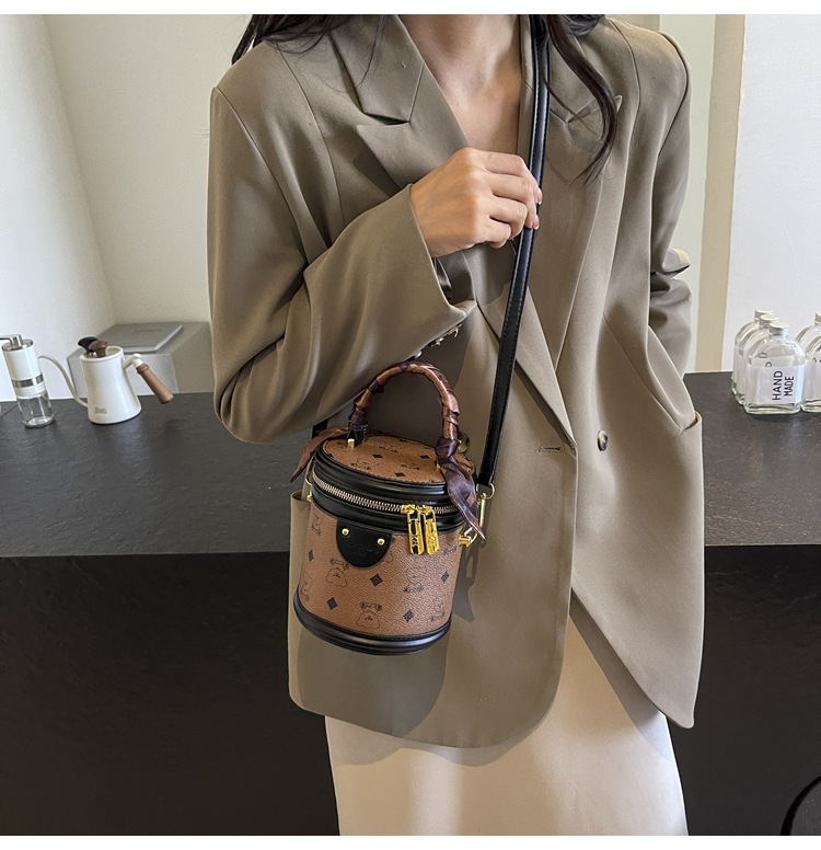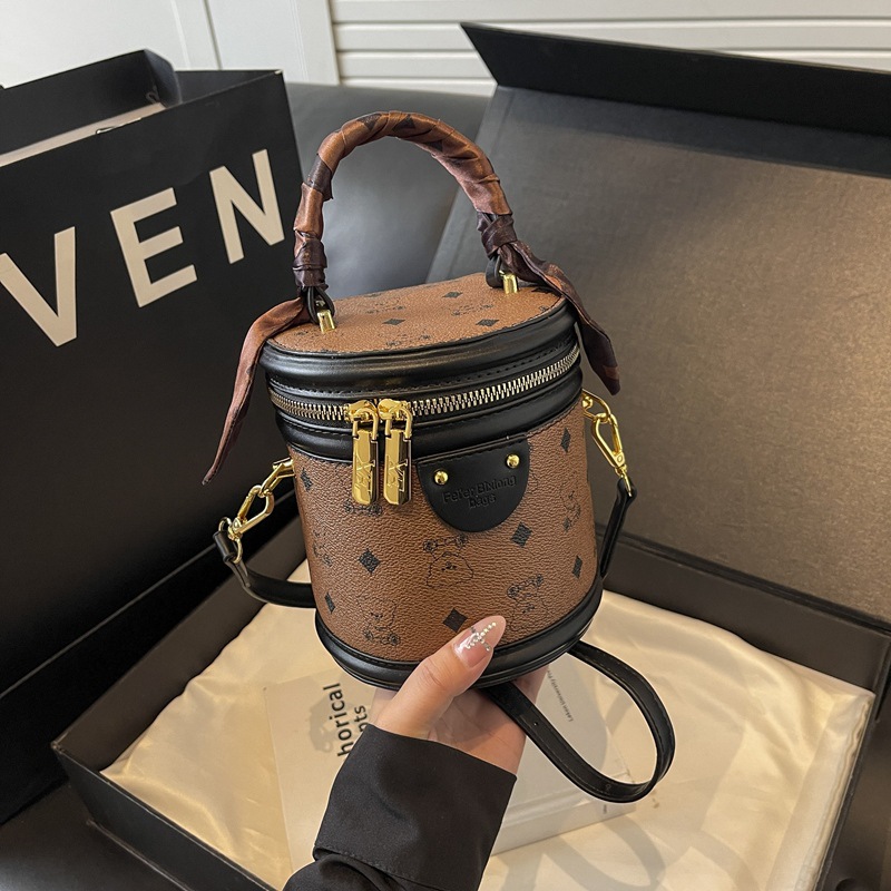 독서 꽃 실린더 가방 여성의 2024 새로운 핸드 버킷 백 레트로 패션 올 매치 숄더 크로스 바디 백스토어 가기