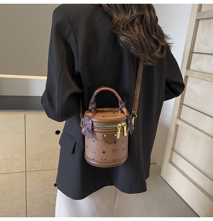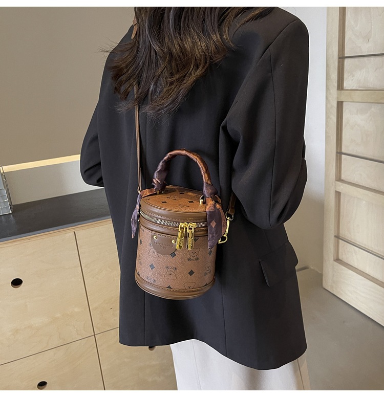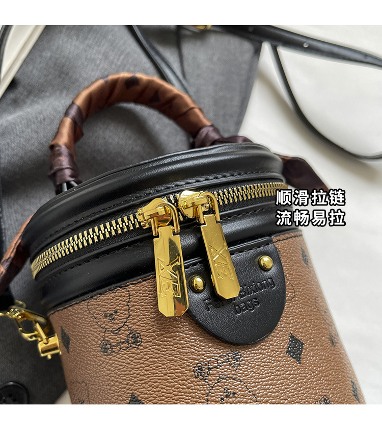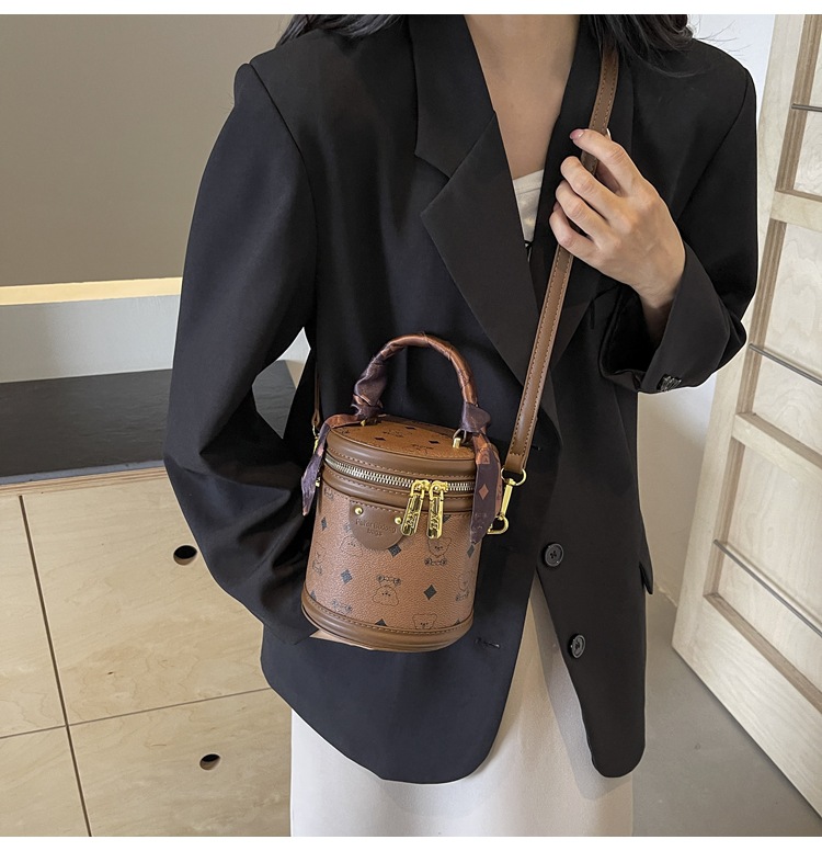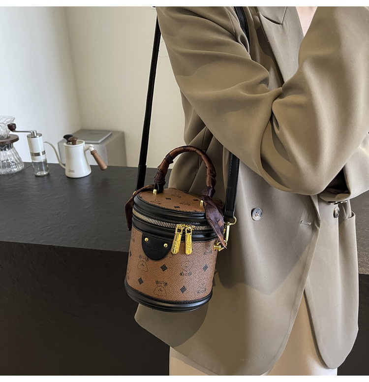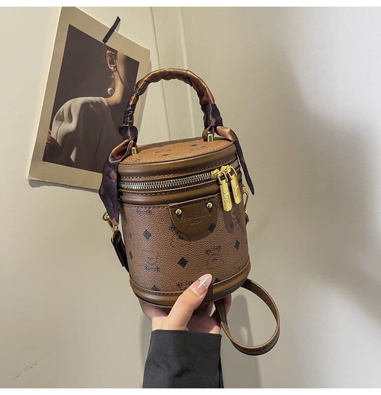 독서 꽃 실린더 가방 여성의 2024 새로운 핸드 버킷 백 레트로 패션 올 매치 숄더 크로스 바디 백스토어 가기