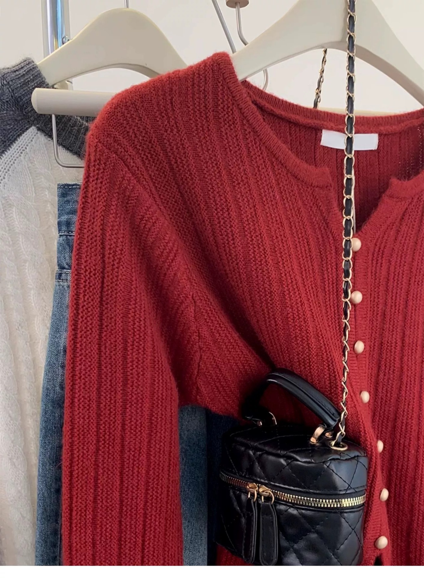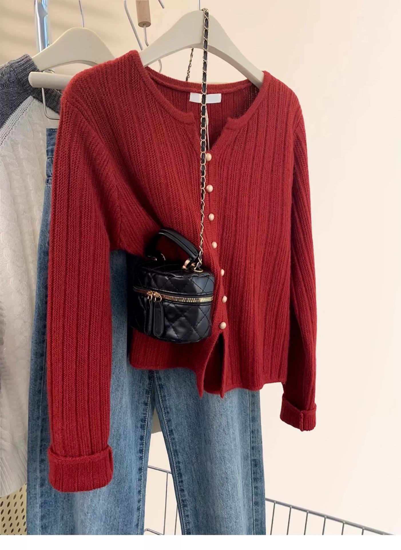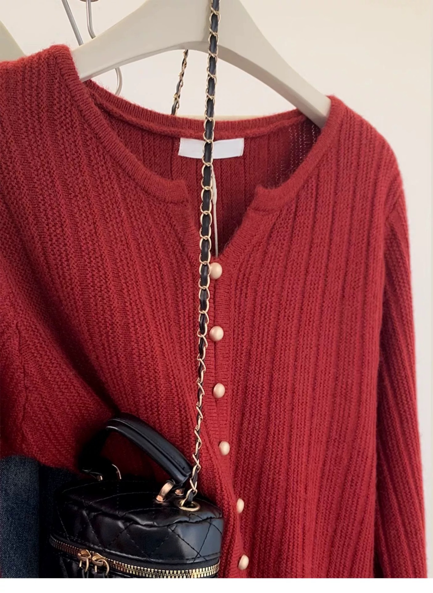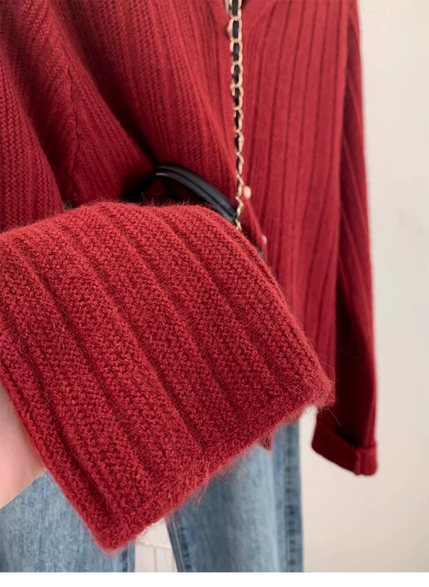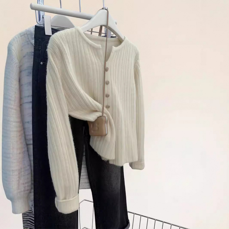 가을과 겨울 새로운 양모 니트 셔츠 여성용 내부 왁스 소프트 왁스 스웨터 어깨 V-넥 니트 스타일베이스 셔츠 탑스토어 가기
