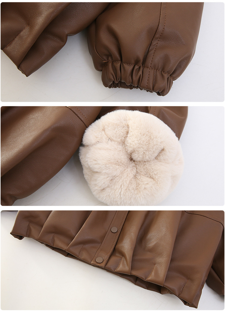 소녀 가죽 자켓 가을과 겨울 2024 새로운 어린이 중 큰 어린이 두꺼운 복고풍 분리 모자 최고 유행 재킷